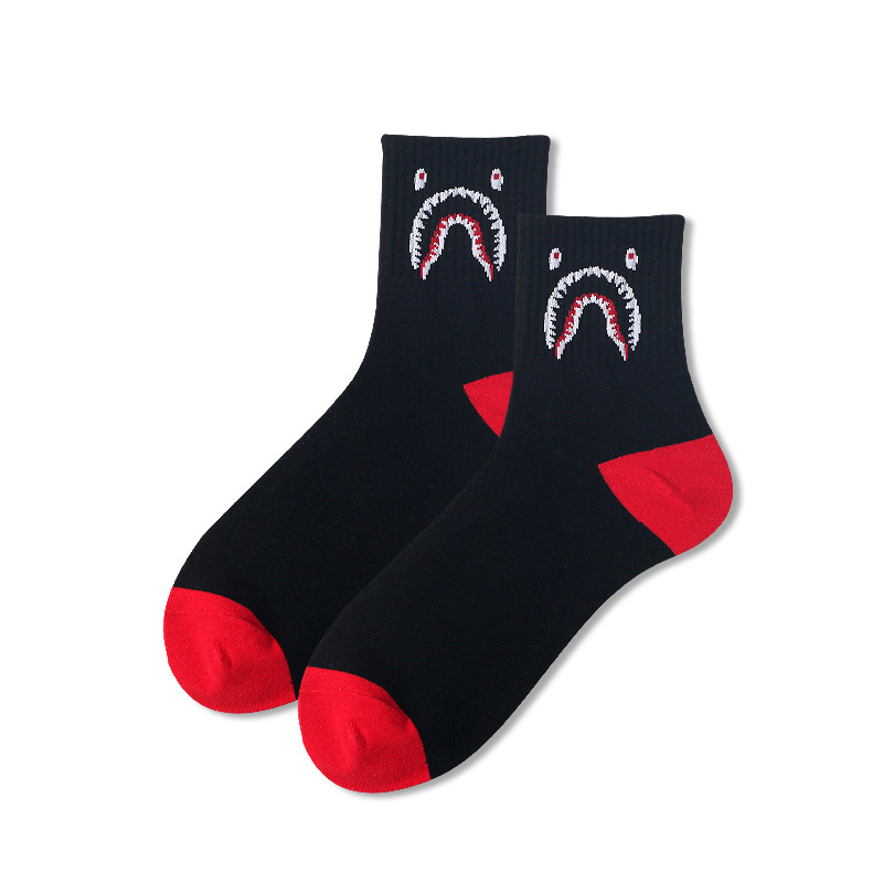 • 3007-32 남성 상어 버블 링 검은 양말 빨간 발 뒤꿈치 팁