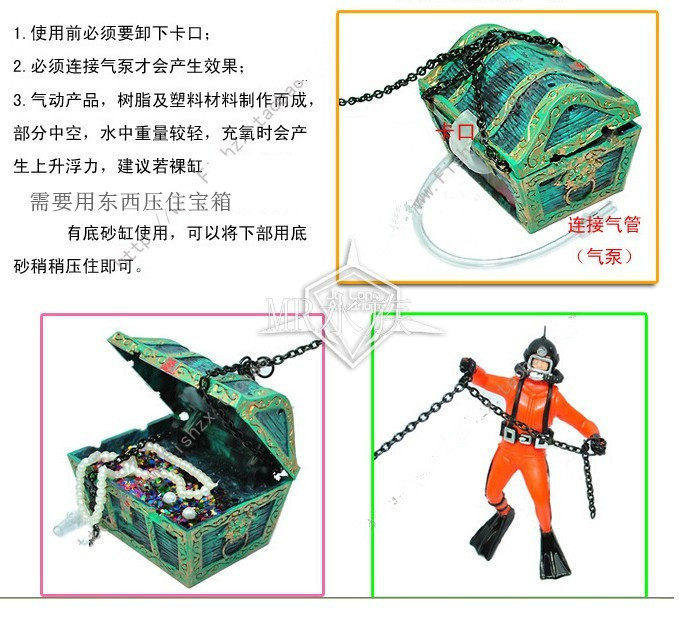 鱼缸超过50CM深度的用不了。宝箱会浮起来,由于此产品有外包装,拆包装后不给予退货,介意慎拍。