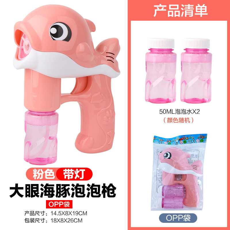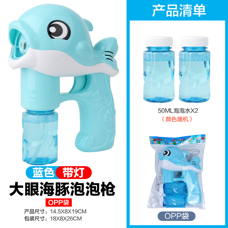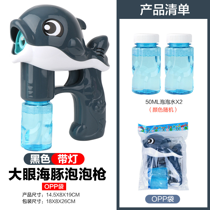 大眼海豚泡泡枪 | 蓝、粉、黑 | 主体*1,泡泡水*2 | OPP袋 | 14.5X8X19CM | 18X8X26CM | 80 | 69*41*46.5 |