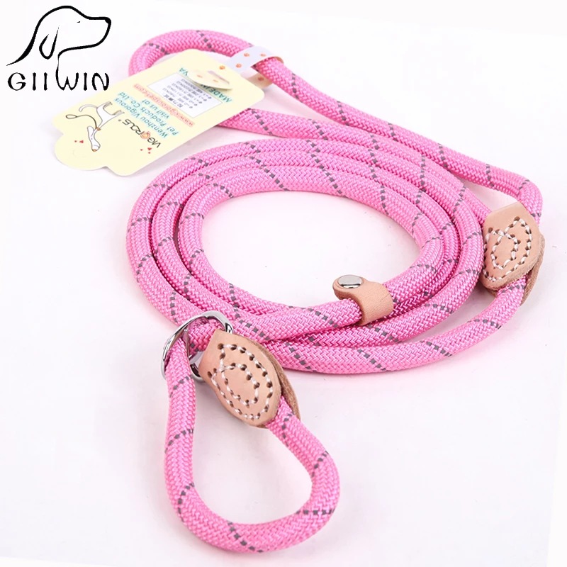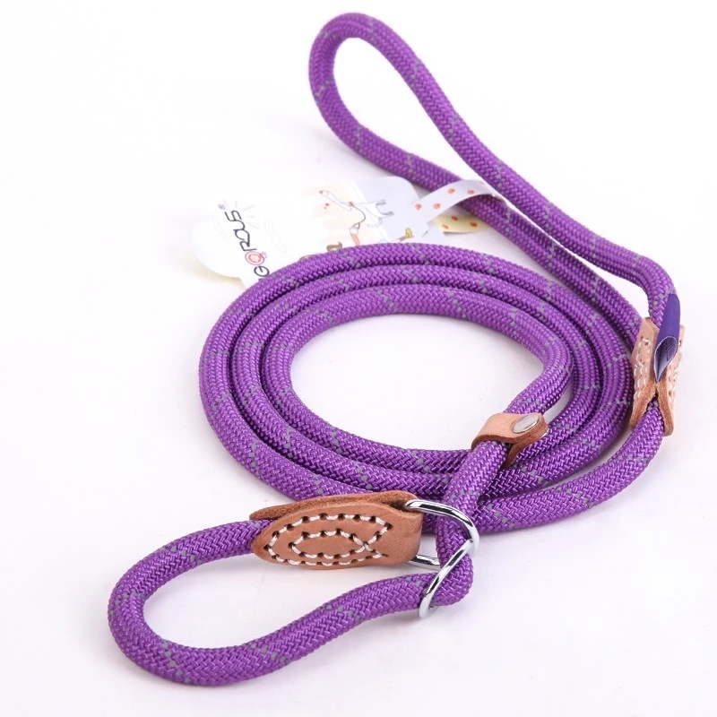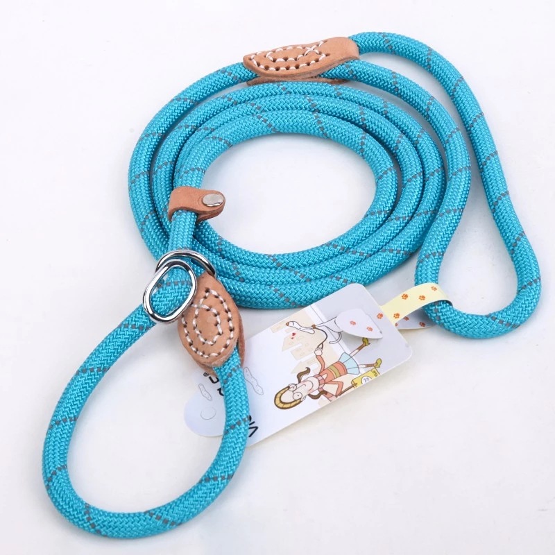애완 동물 용품 개 갈고리없는 견인 로프 다채로운 가죽 반사 실크 P 로프 개 체인 걷는 밧줄 빨간색과 파란색
