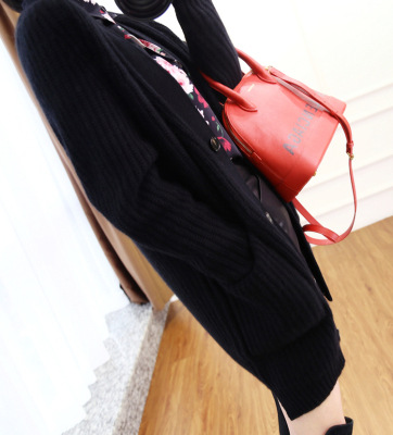 봄과 가을 중간 길이 니트 가디건 여성용 V-넥 외부 두꺼운 스웨터 재킷 느슨한 게으른 스타일 트렌디 스웨터스토어 가기