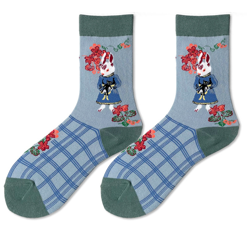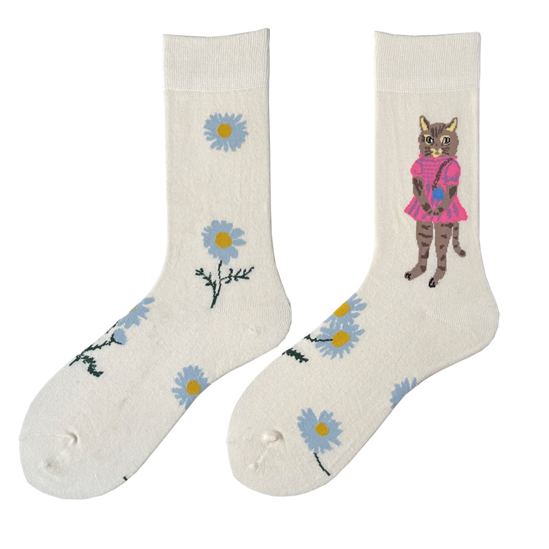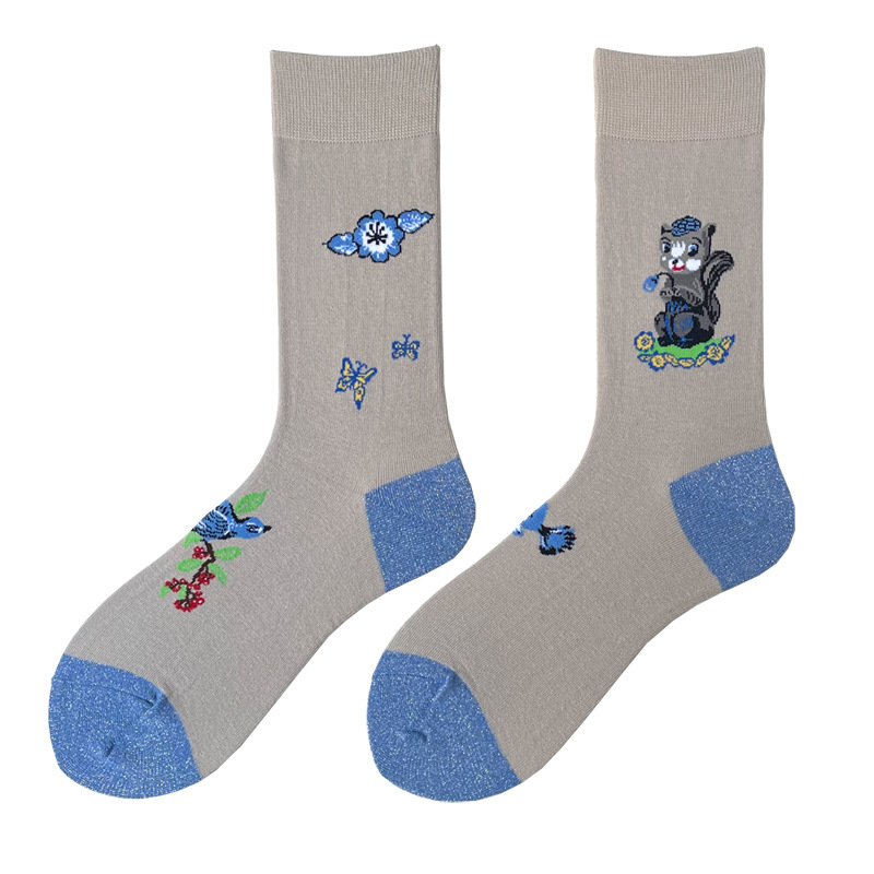 한국 디자이너 귀여운 새끼 고양이 양말 여성 AB 중간 배럴 봄 새로운 다람쥐 토끼 INS 성격 스타킹