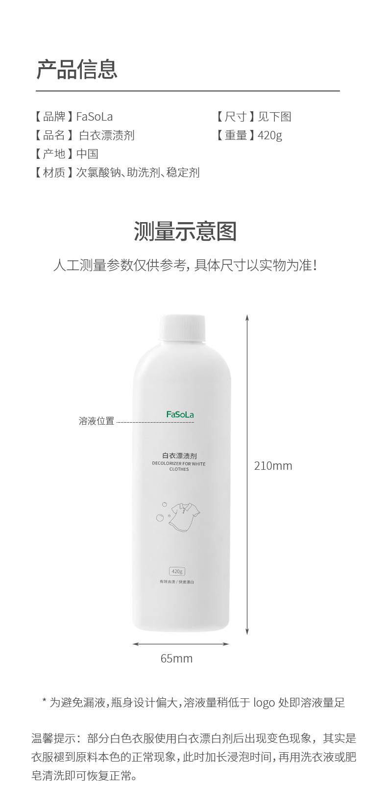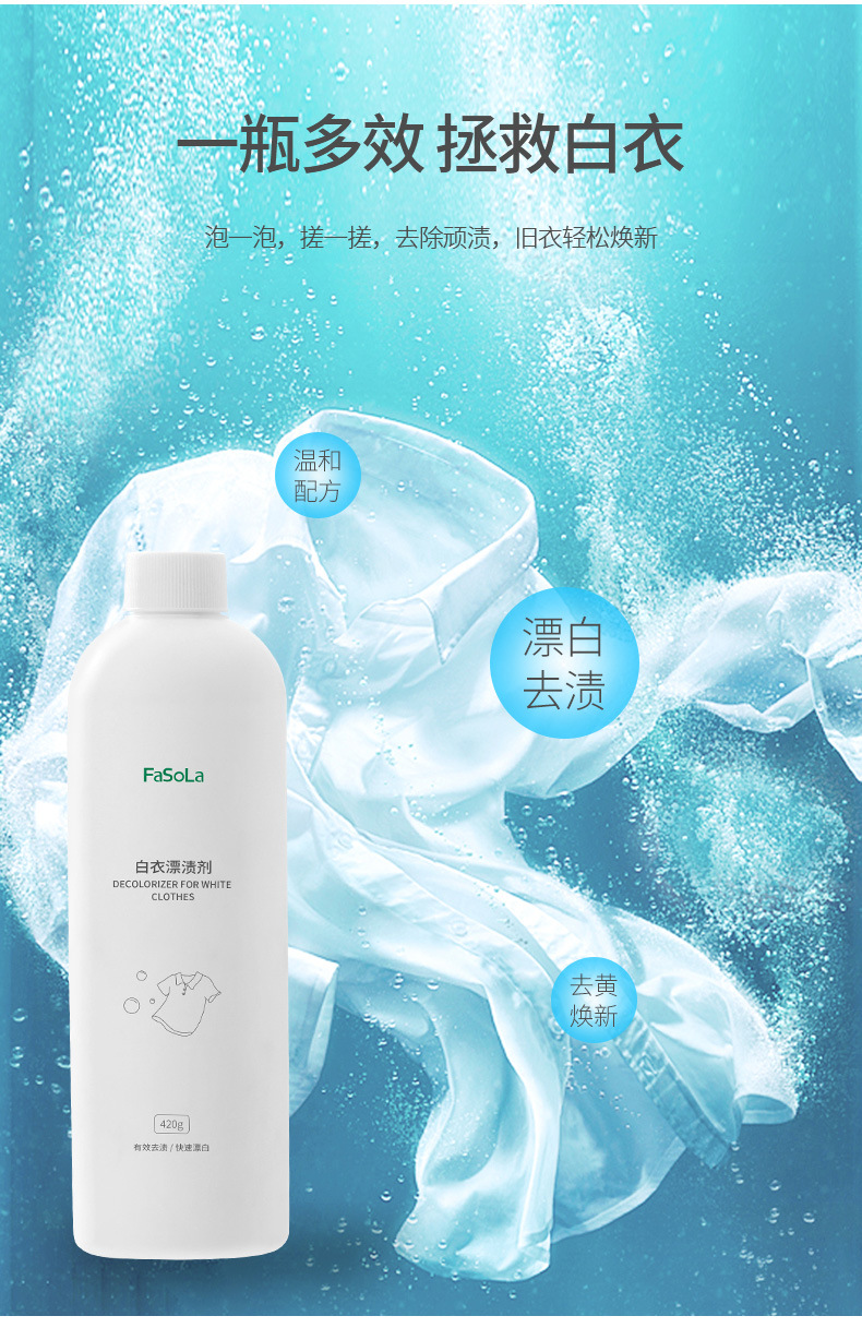 FaSoLa 흰색 옷 표백제 얼룩 제거 및 미백 제거 황변 범용 감소 색상 의류 청소 관리 표백제스토어 가기