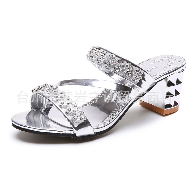 한국 스타일의 새로운 다용도 여름 여성 샌들, 미드 힐 여성 신발, 라인스톤 헤링본 대형 샌들, 여성 도매