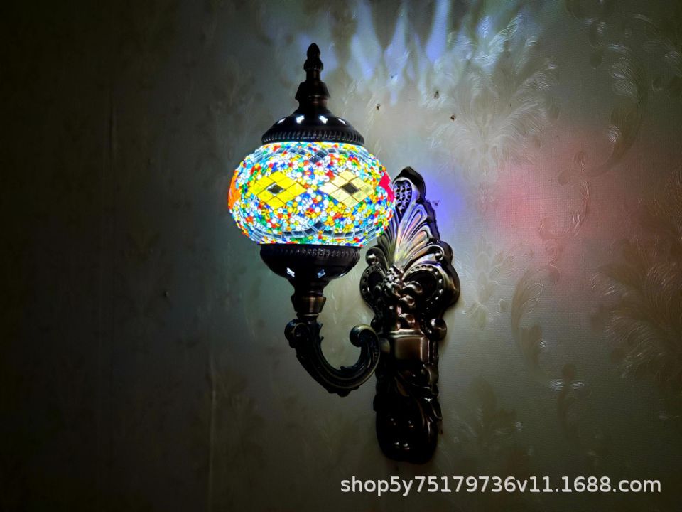 产品特点:土耳其风格、漫咖啡、民族民宿床头灯装饰、古典、裂纹玻璃复古浪漫壁灯。