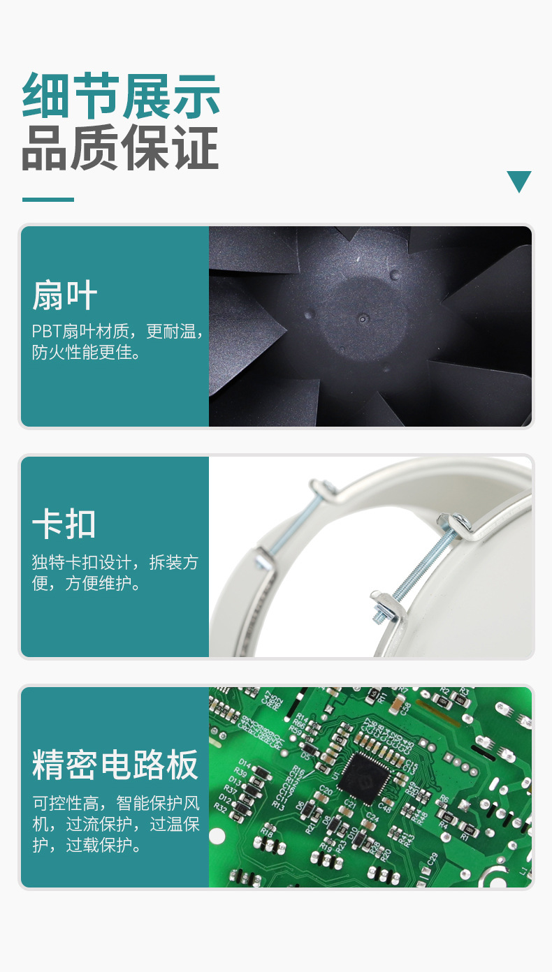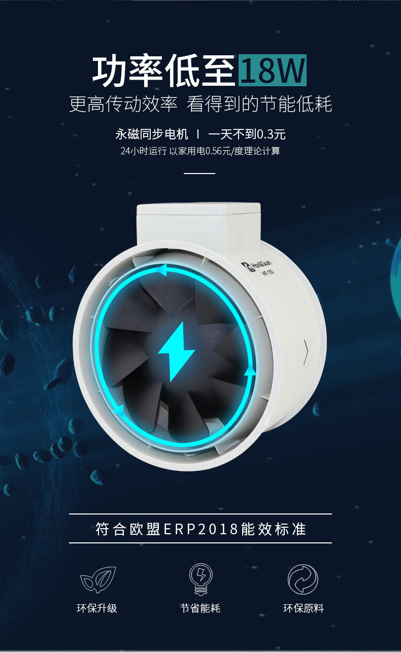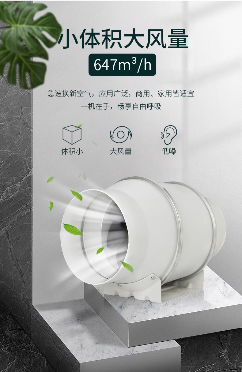 홍관 인버터 팬, 사선형 덕트 팬, 강력한 에너지 절약형, 카드룸, 주방 배기 팬 4/6/8/10/ 12inch스토어 가기