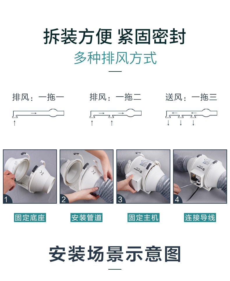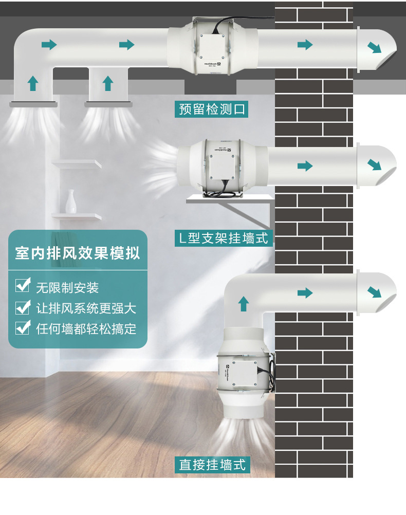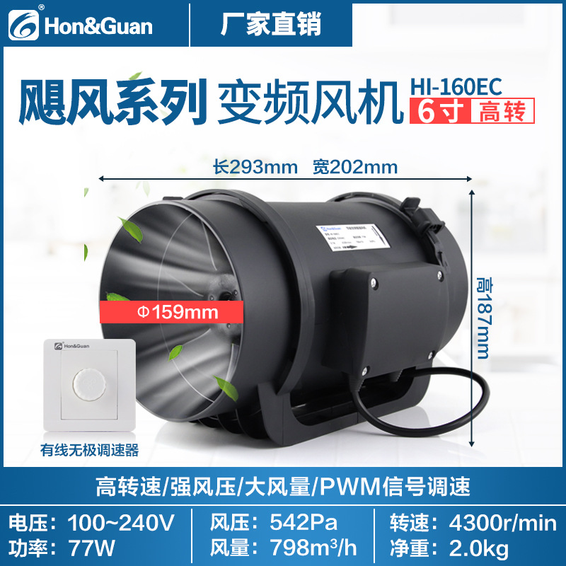 • 대형 6 인치 HI-160EC(4300 rpm) * 무단 속도 조절 스위치 * 가변 주파수 파이프라인 팬