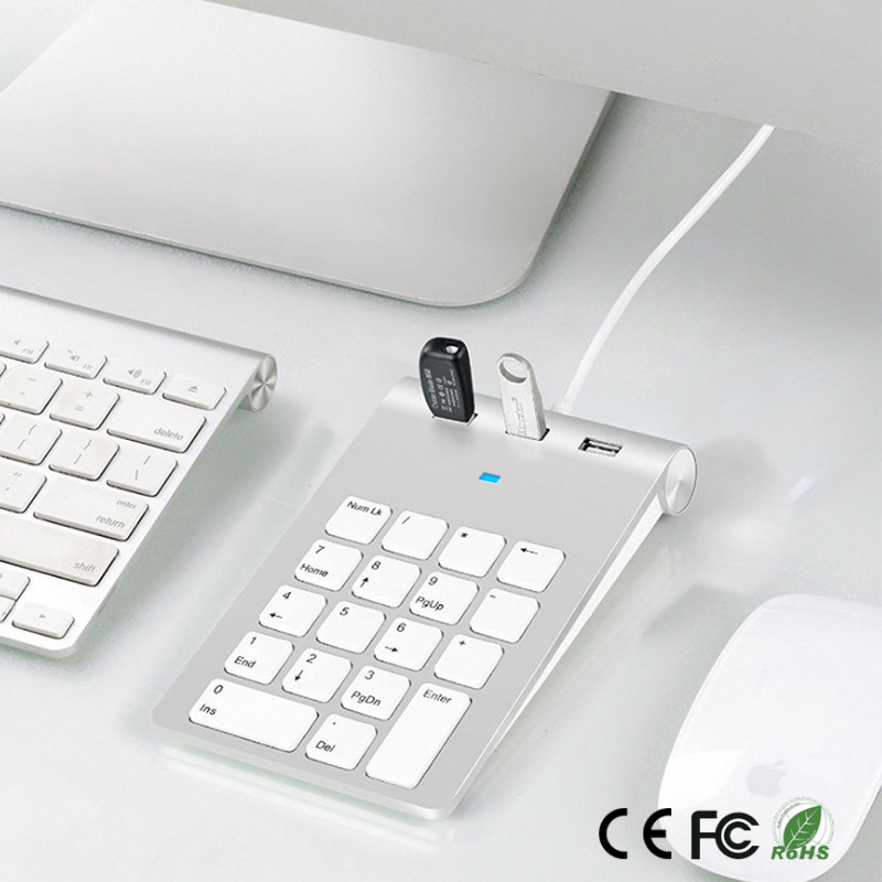 맞춤형 소형 키보드 18키 USB 2.0 허브 포함 금융 계산원 컴퓨터 USB 유선 무음 숫자 키보드 OEM스토어 가기