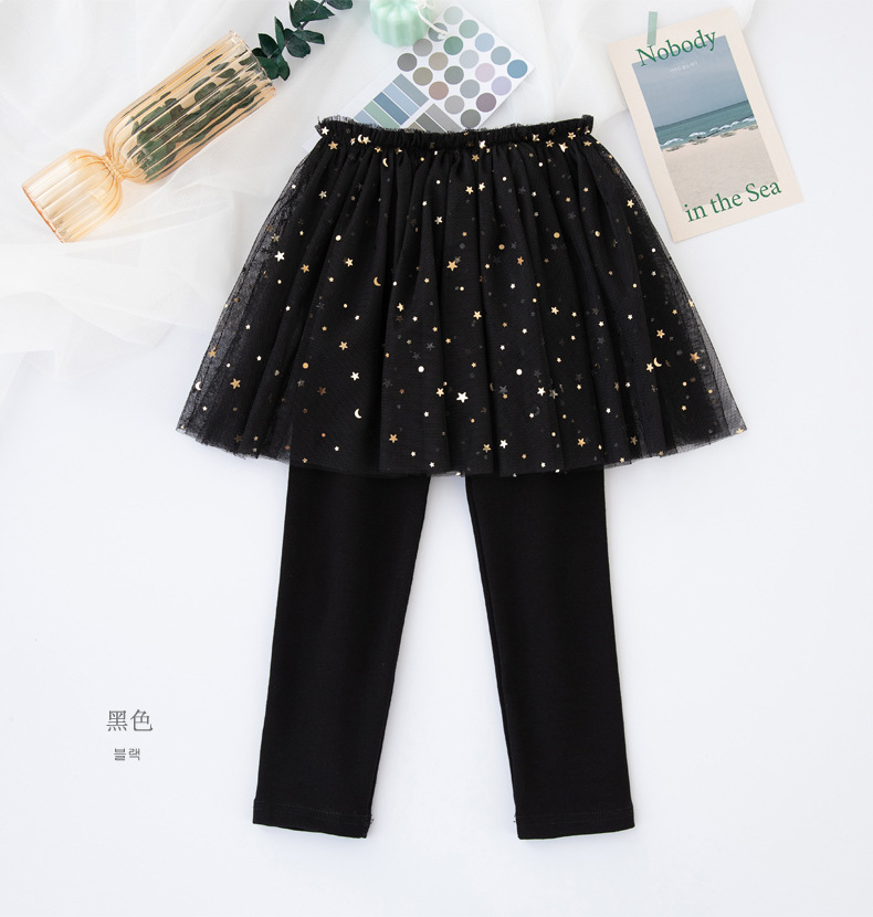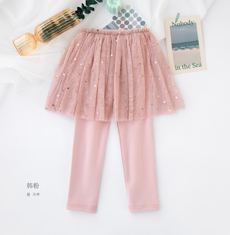 봄과 가을 어린이 퀼로트, 공주 레이스 거즈 스커트 레깅스, 한국 스타일 스팽글 스타 여아 레깅스 스커트
