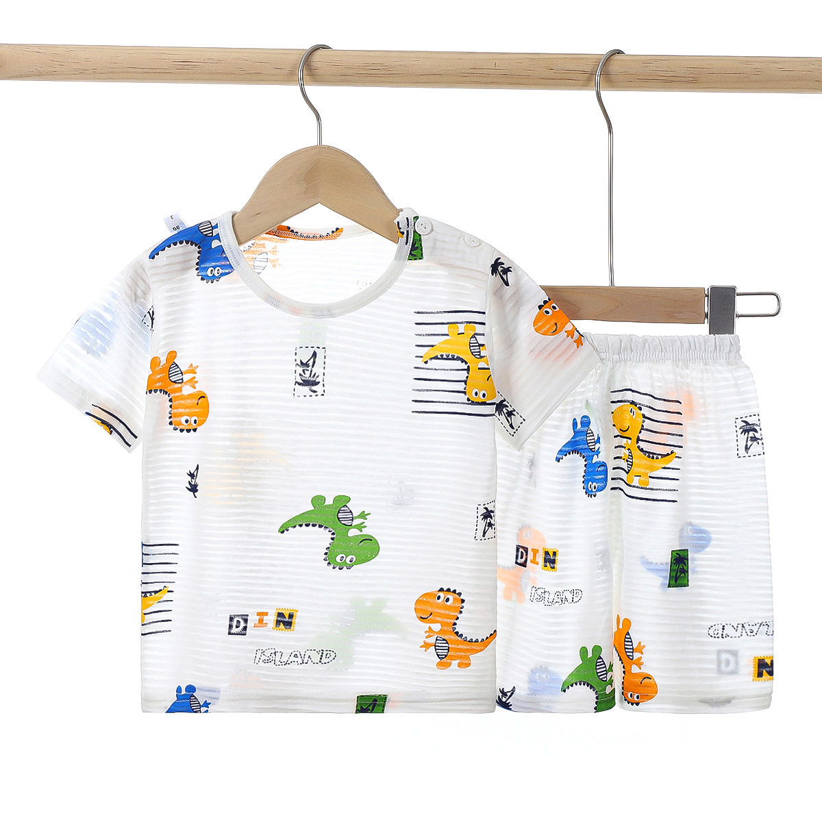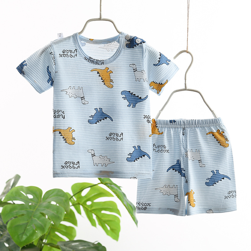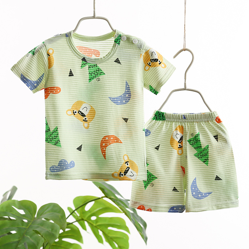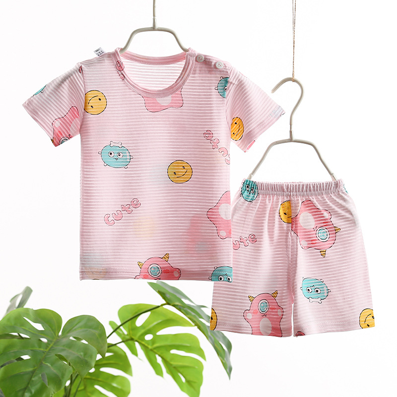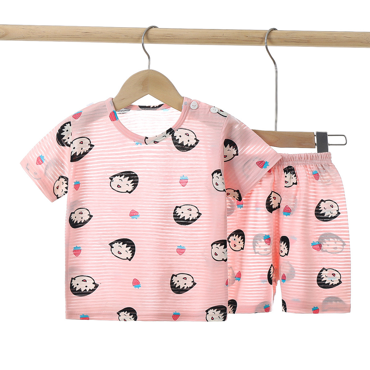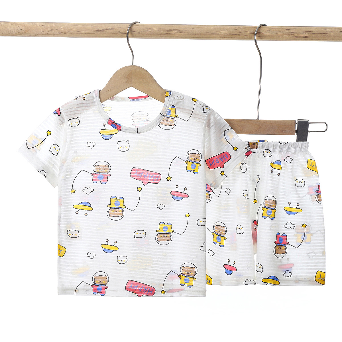 어린이 여름 얇은 면 가정 의류 잠옷 세트 통기성 땀 흡수 반팔 티셔츠 반바지 소년 소녀 아기 에어컨 의류스토어 가기
