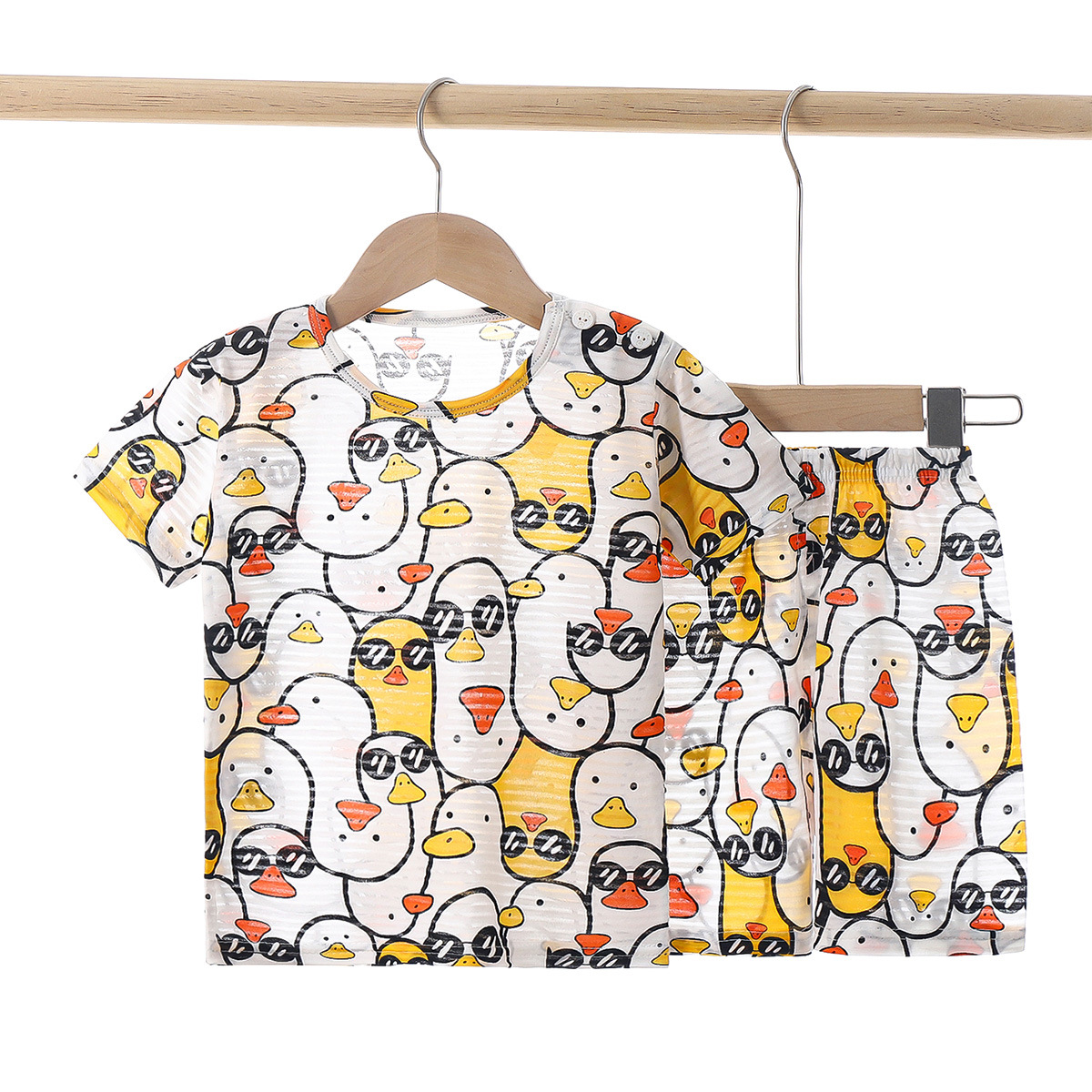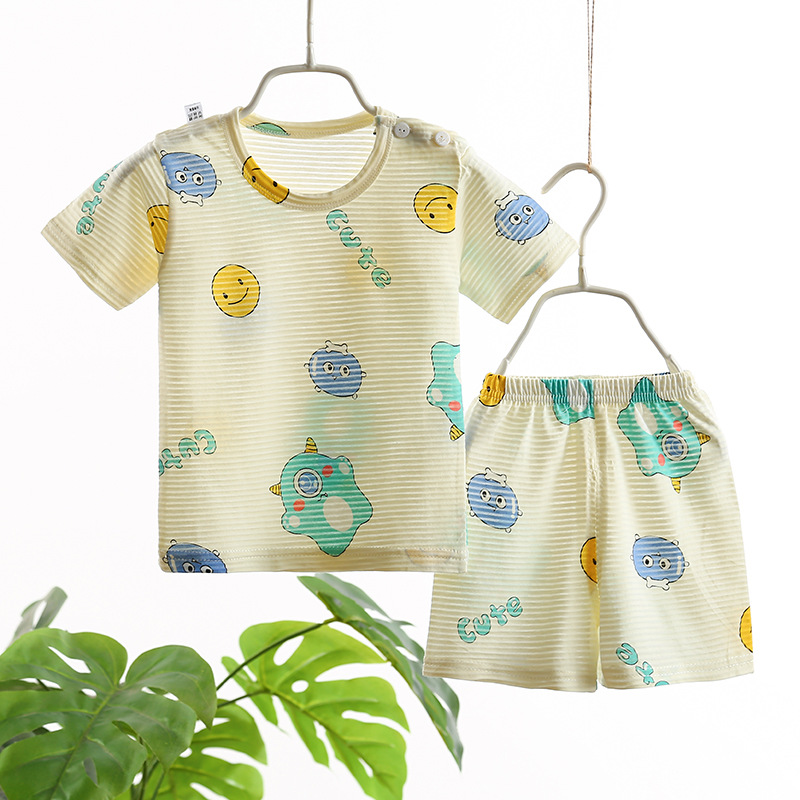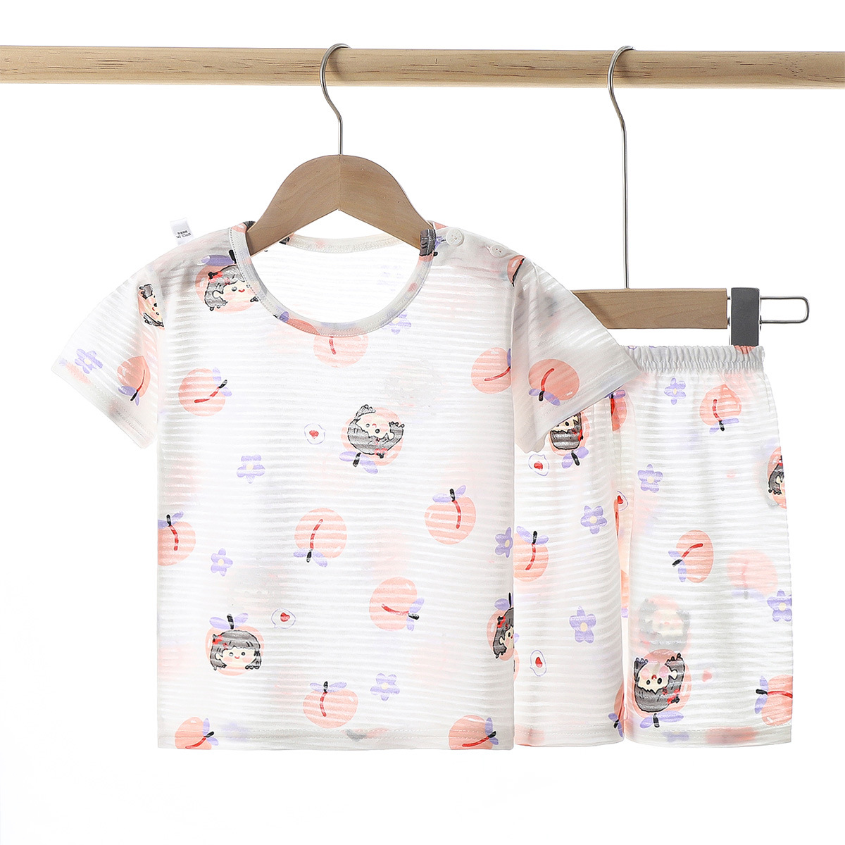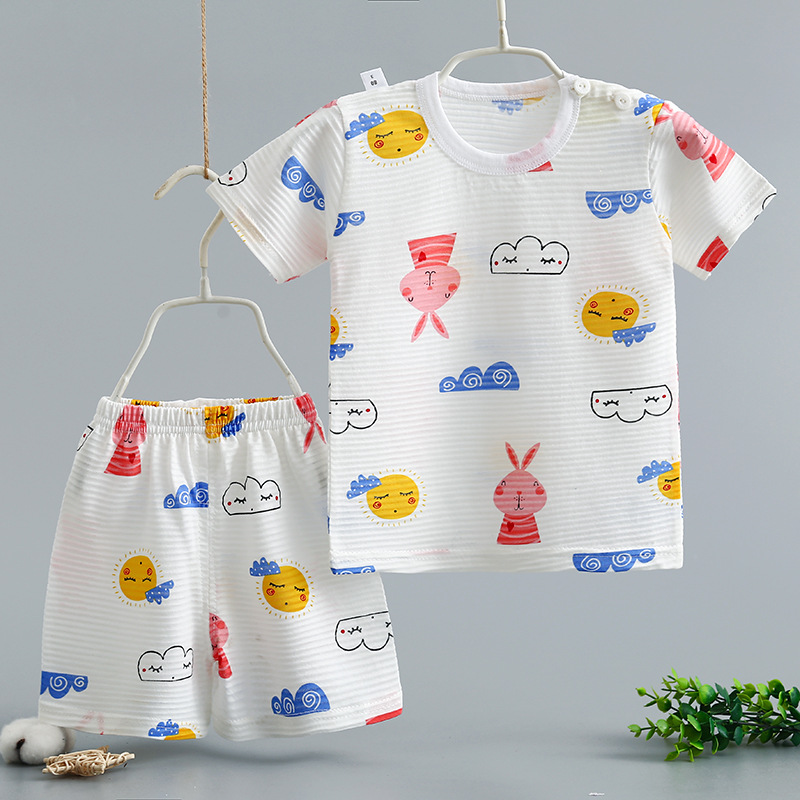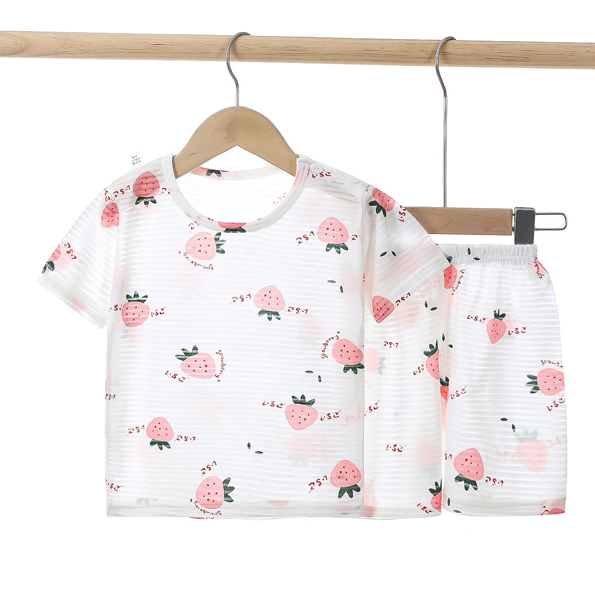 어린이 여름 얇은 면 가정 의류 잠옷 세트 통기성 땀 흡수 반팔 티셔츠 반바지 소년 소녀 아기 에어컨 의류스토어 가기
