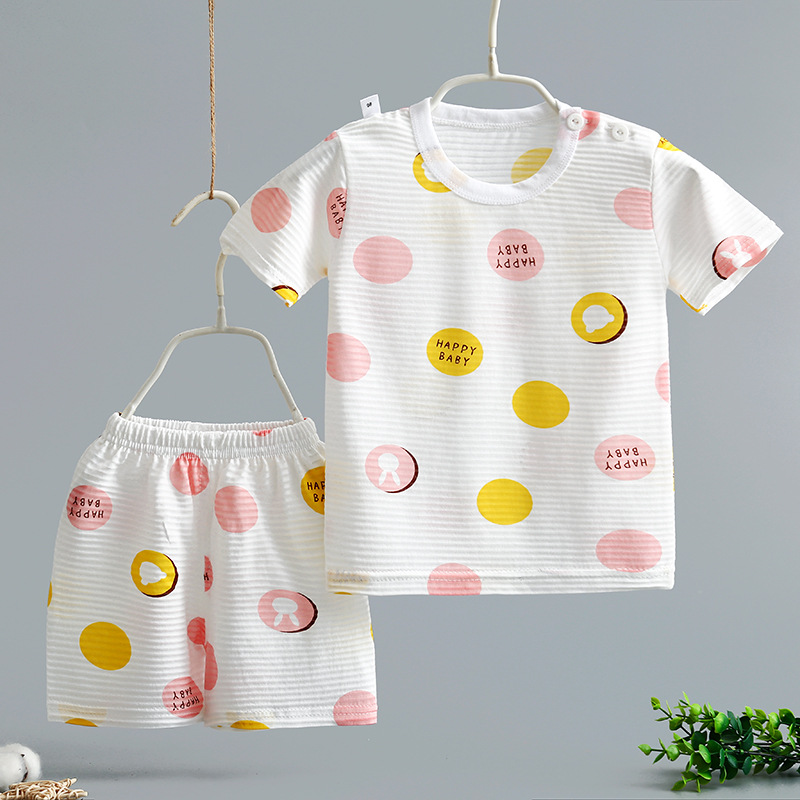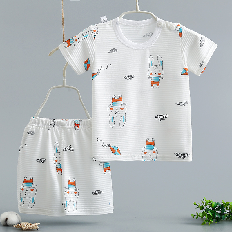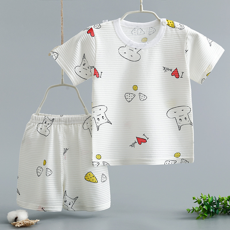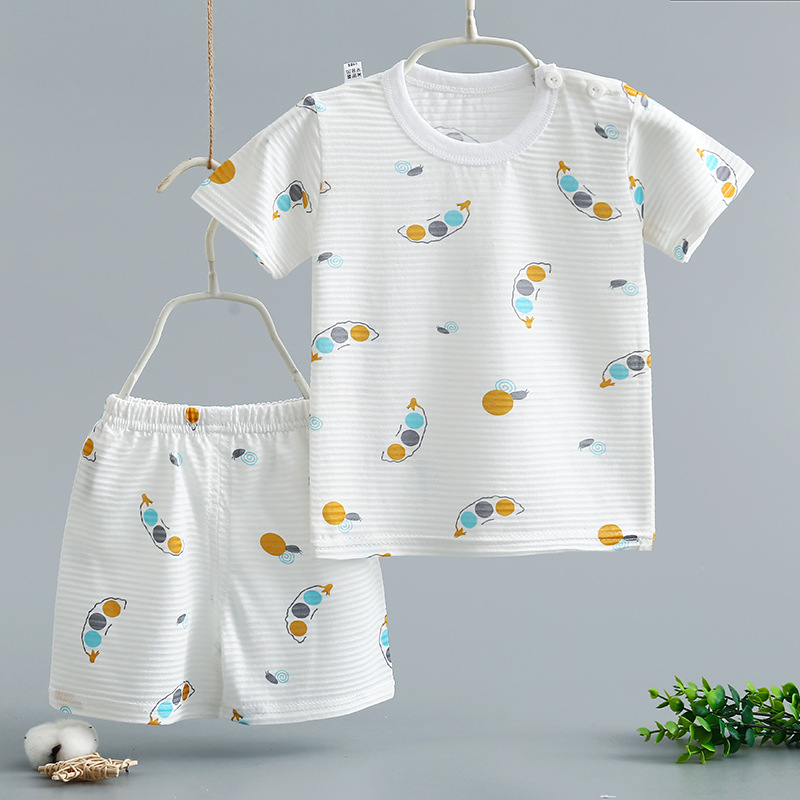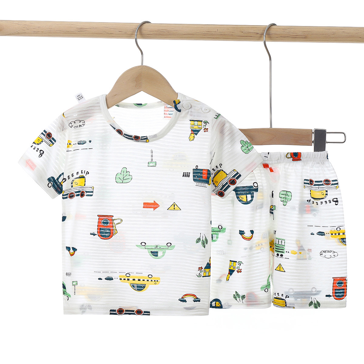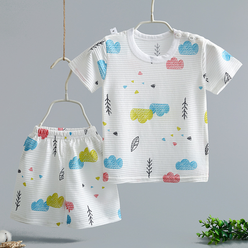 어린이 여름 얇은 면 가정 의류 잠옷 세트 통기성 땀 흡수 반팔 티셔츠 반바지 소년 소녀 아기 에어컨 의류스토어 가기