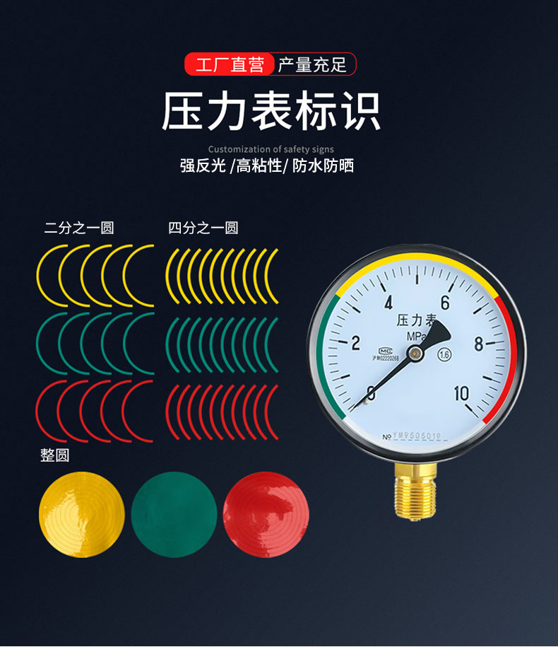 압력 게이지 로고 스티커 반사 방수 1/4 호 반원 전체 원 악기 표시기 스티커