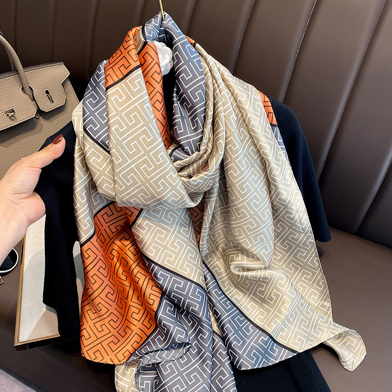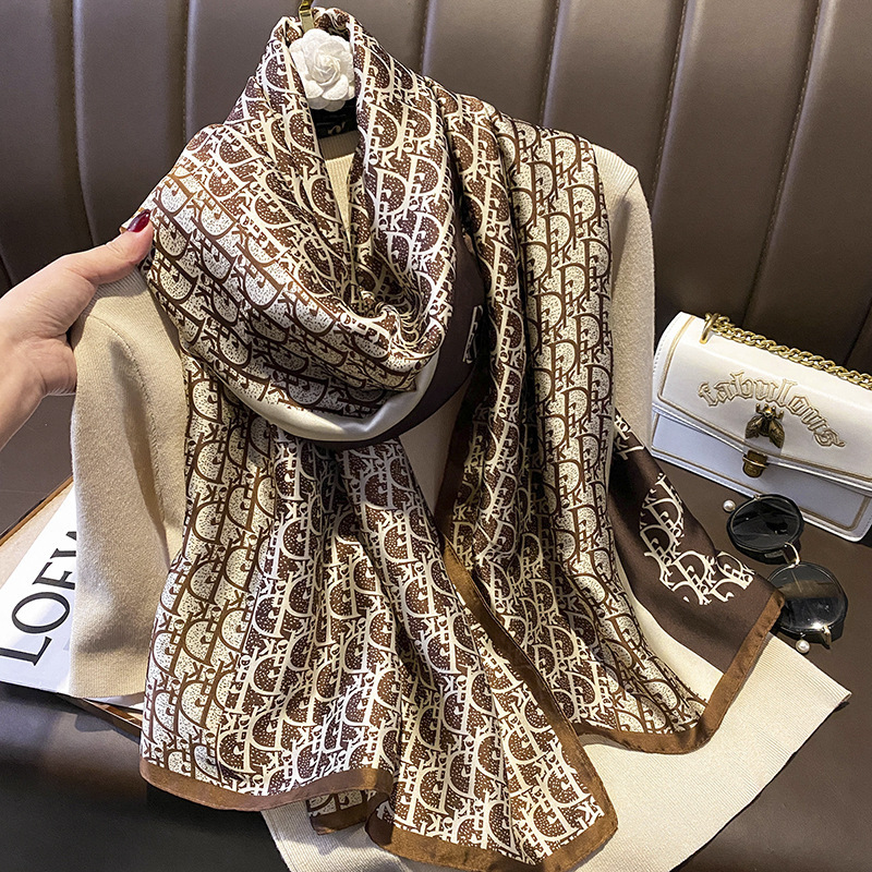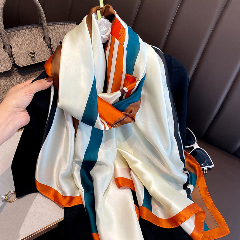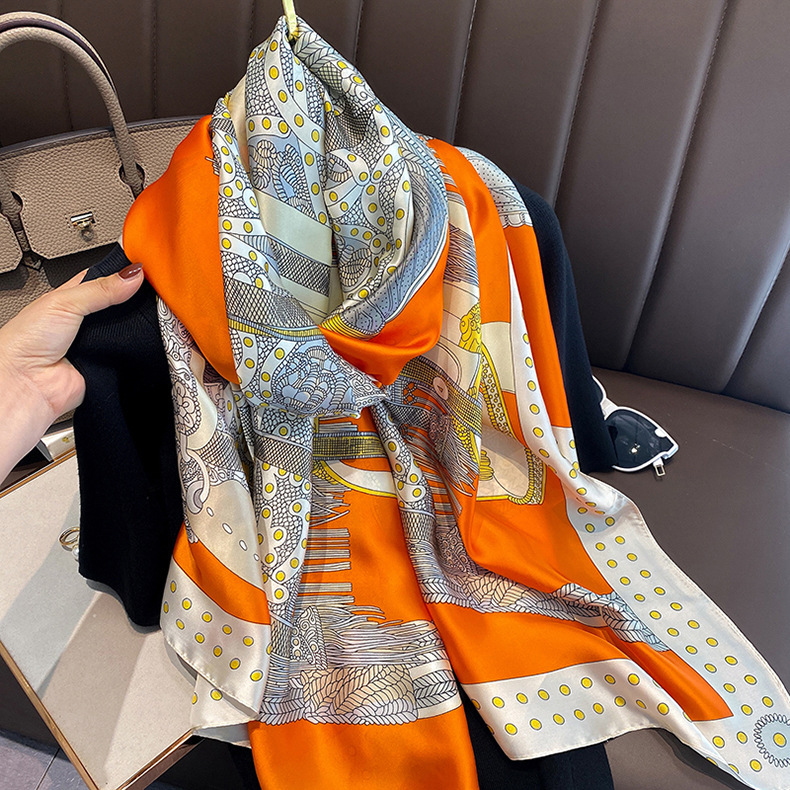 여자의 스카프 실크 스카프 한국 유화 인쇄 중간 길이 장식 차양 자외선 차단제 숄 비치 타올