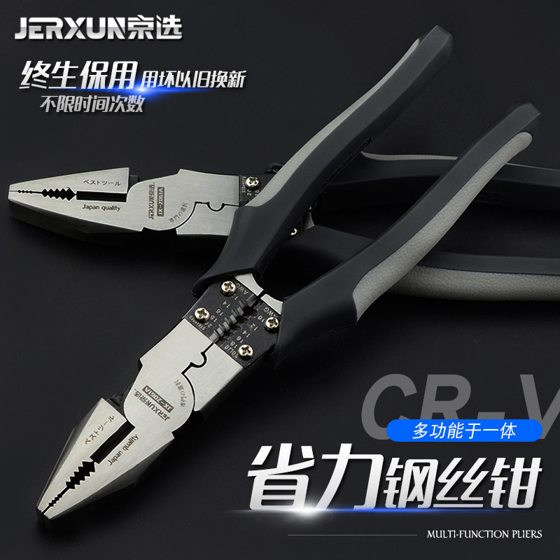 京选多功能8寸钢丝钳老虎钳电工钳子省力平口压线剥线剪线剥皮钳