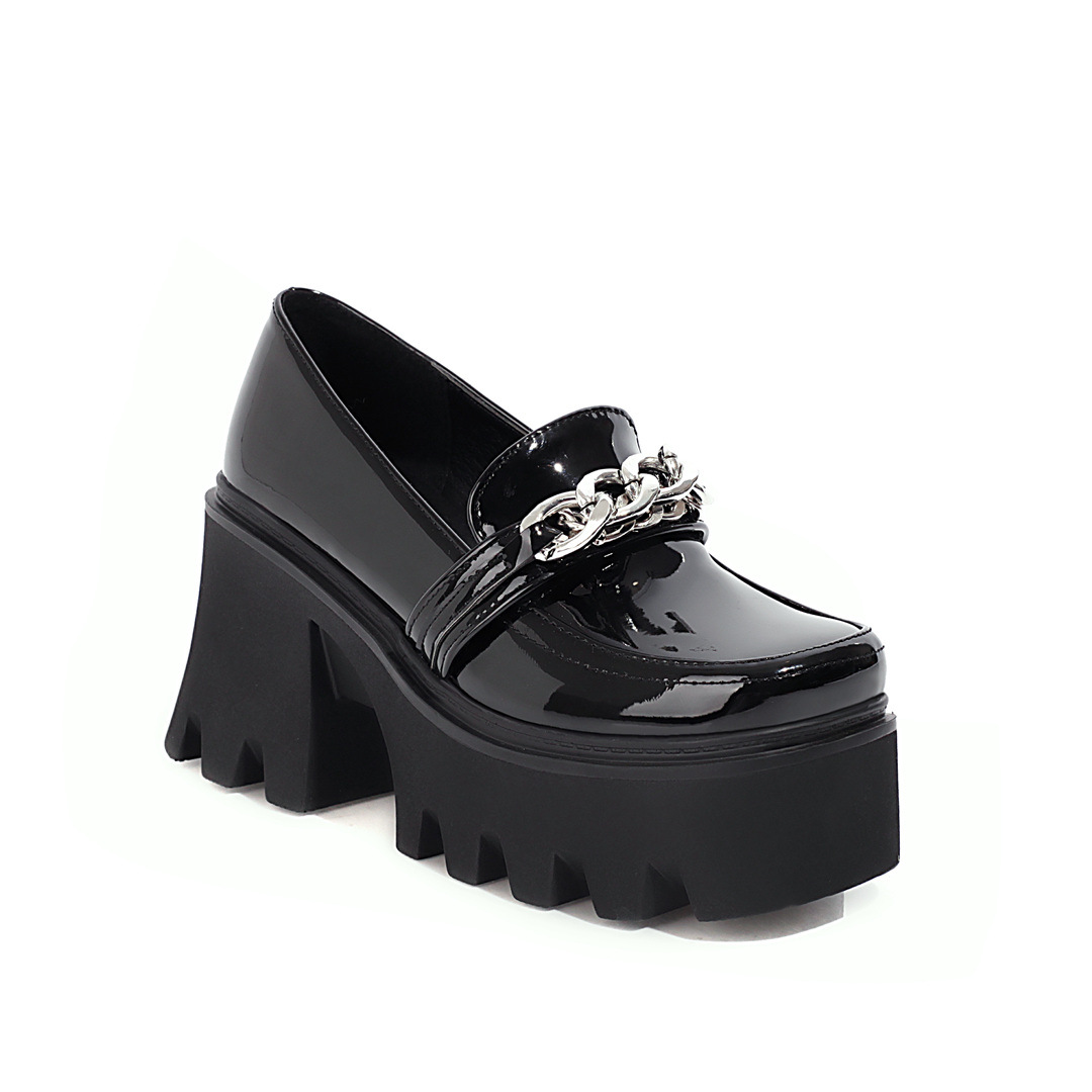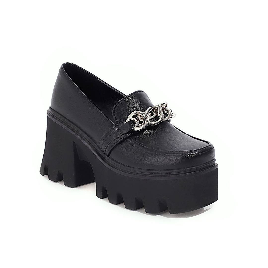 단층 신발 여성 2021 봄과 가을 새로운 다크 스타일 체인 복고풍 두꺼운 뒤꿈치 작은 가죽 신발 스퀘어 토 싱글 레이어 신발 in 조수스토어 가기