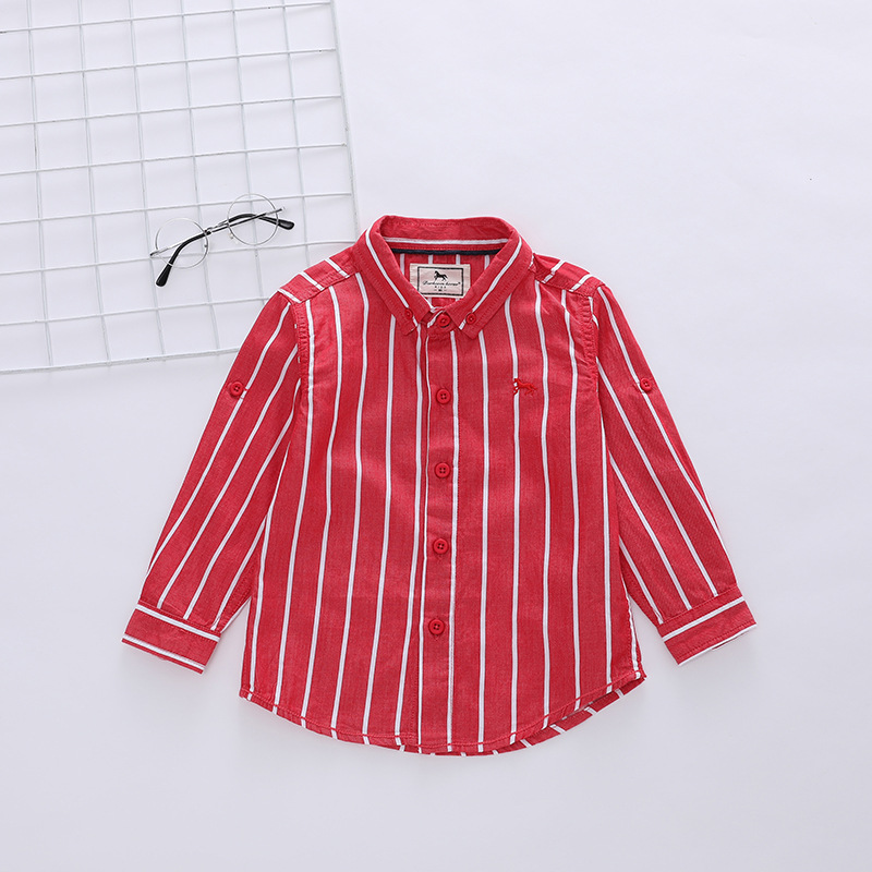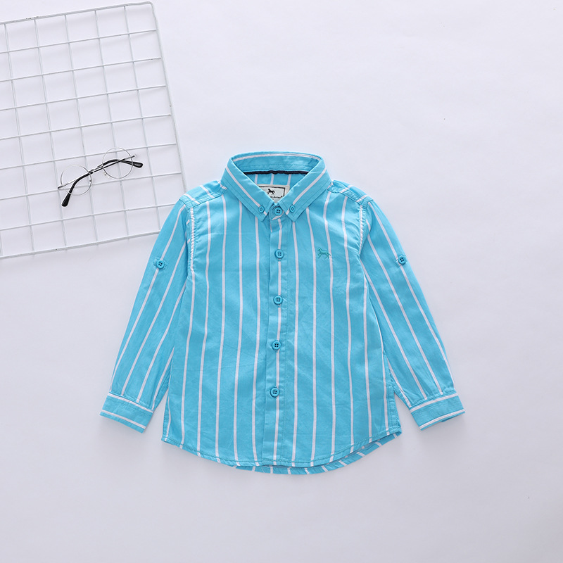 1 손 배치 소년과 아동 의류 도매 한국어 버전 새로운 봄, 가을 흰색 줄무늬 셔츠 소년 긴팔 셔츠 유행