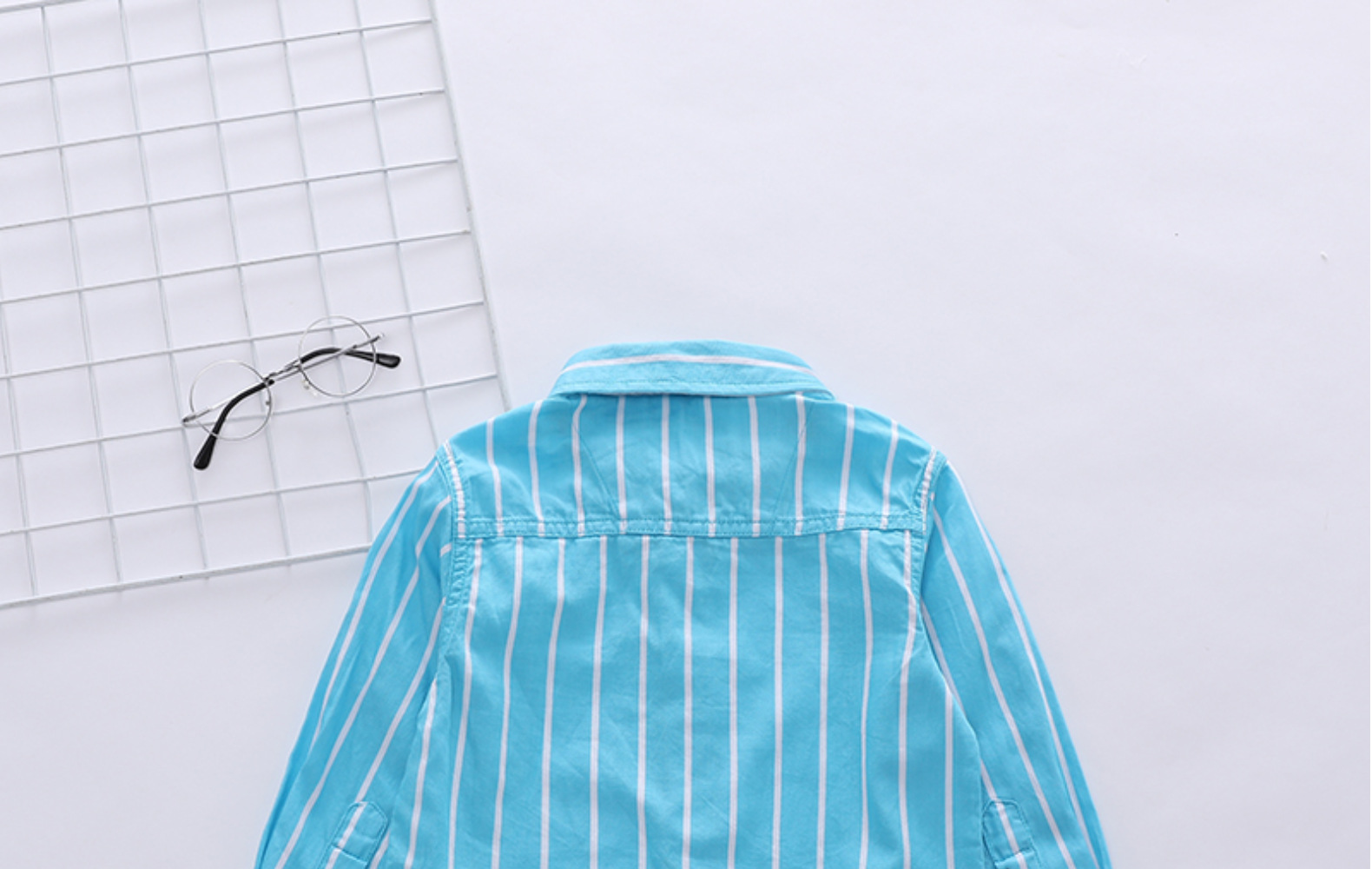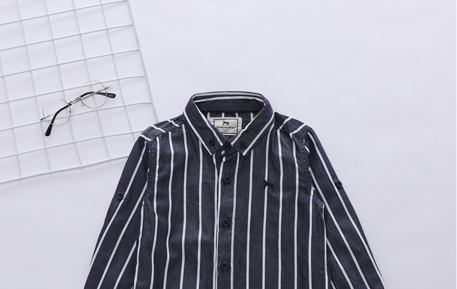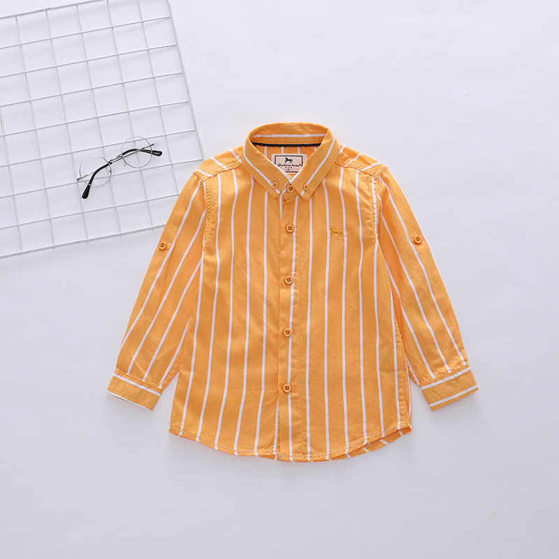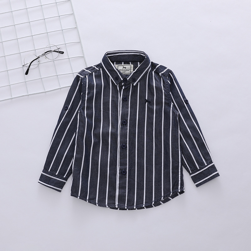 1 손 배치 소년과 아동 의류 도매 한국어 버전 새로운 봄, 가을 흰색 줄무늬 셔츠 소년 긴팔 셔츠 유행스토어 가기