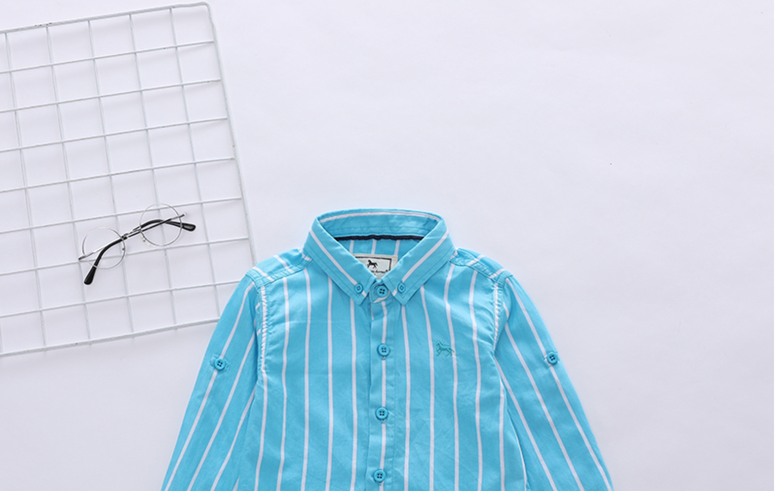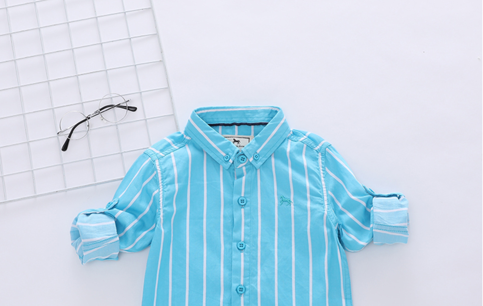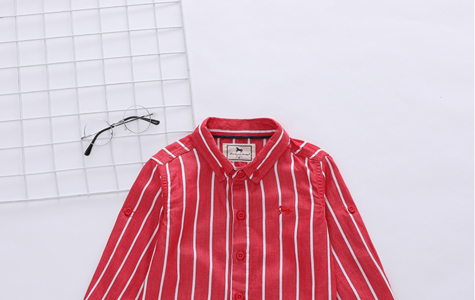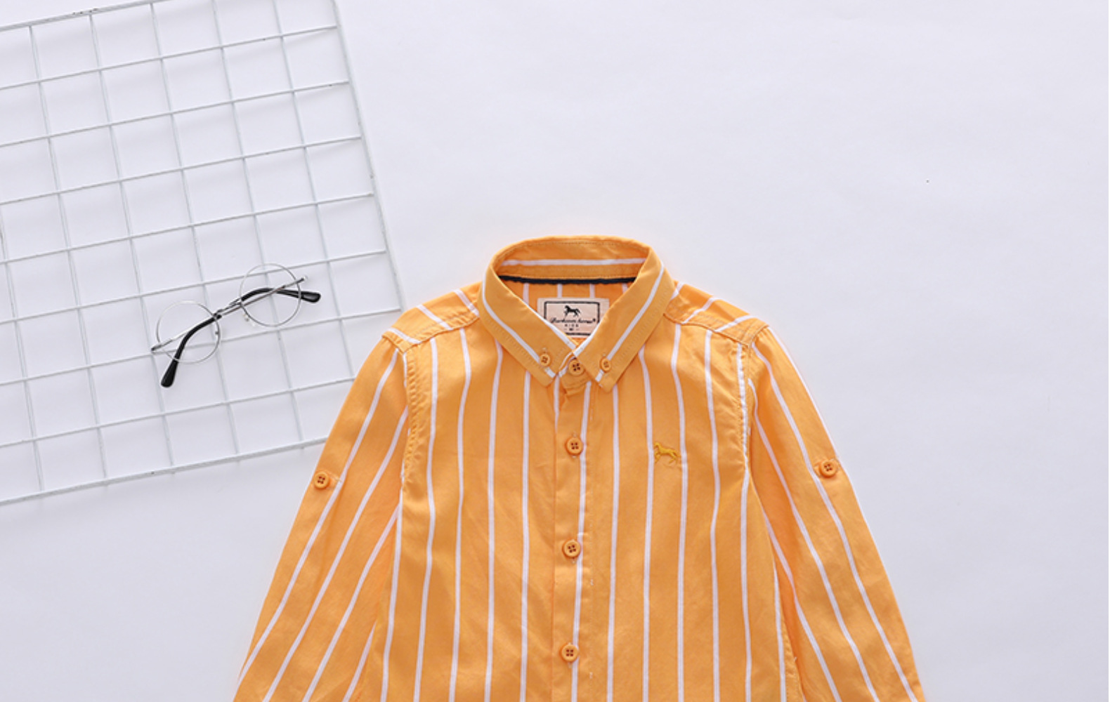 1 손 배치 소년과 아동 의류 도매 한국어 버전 새로운 봄, 가을 흰색 줄무늬 셔츠 소년 긴팔 셔츠 유행스토어 가기
