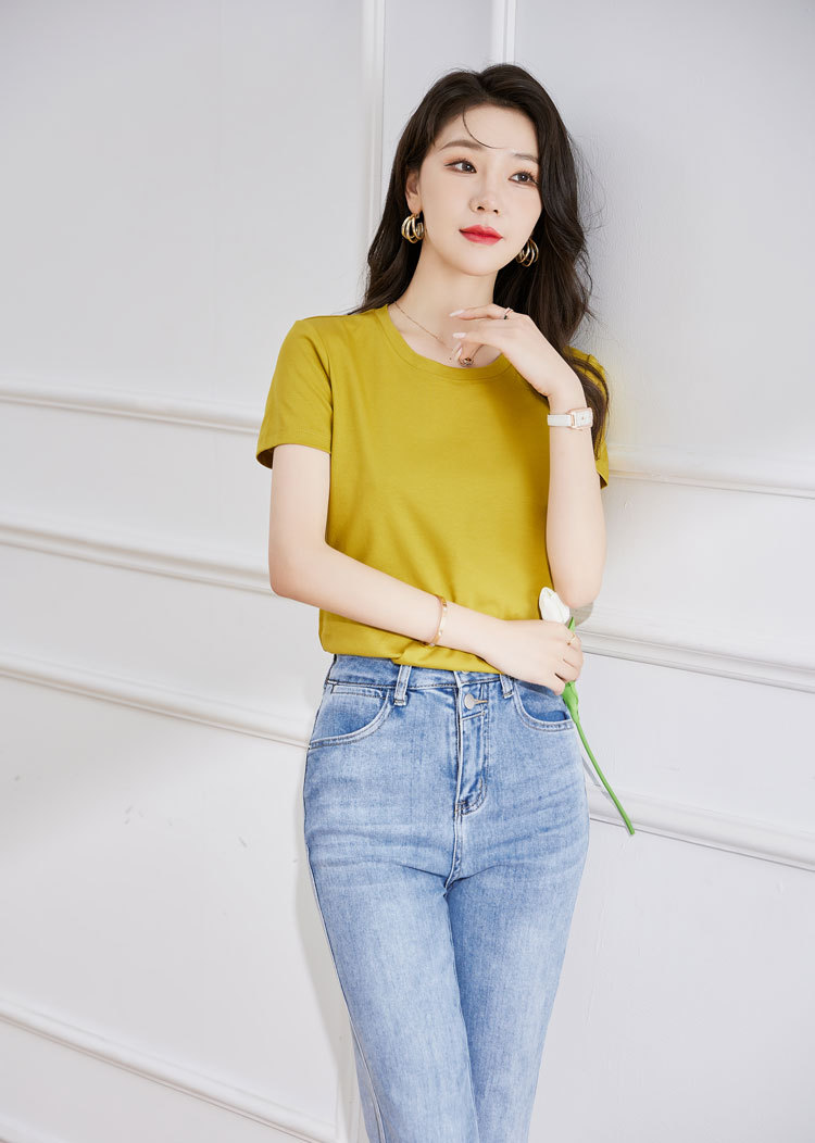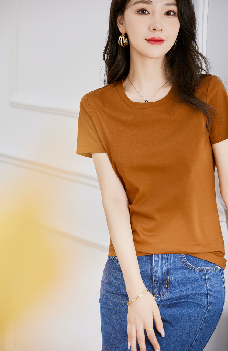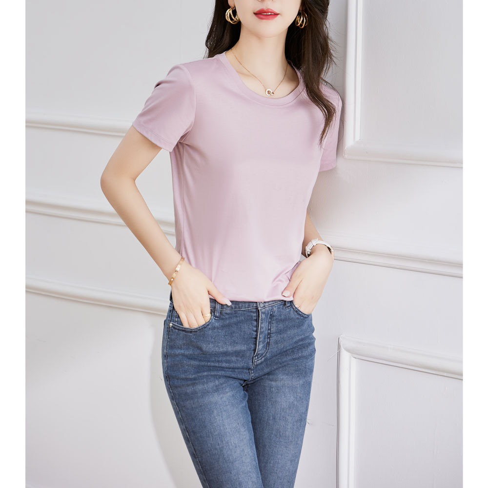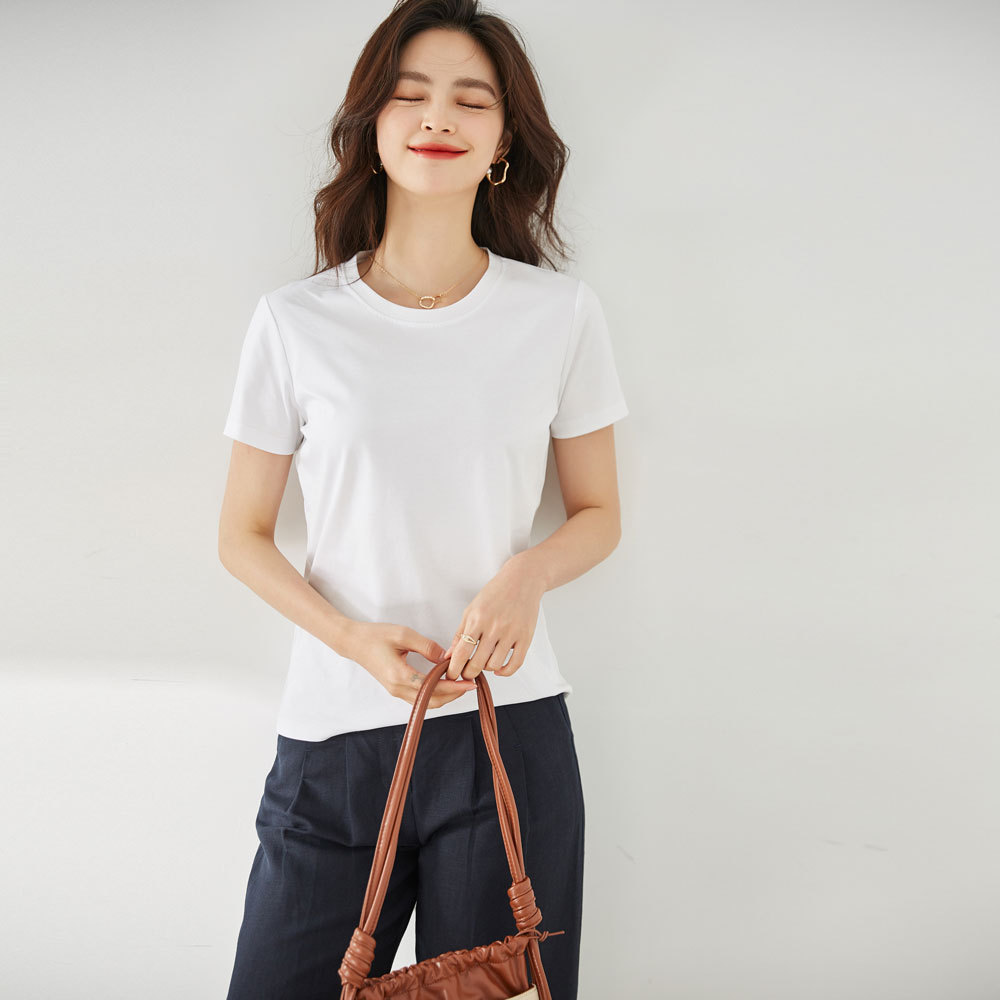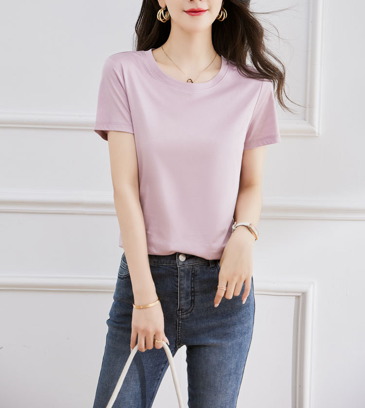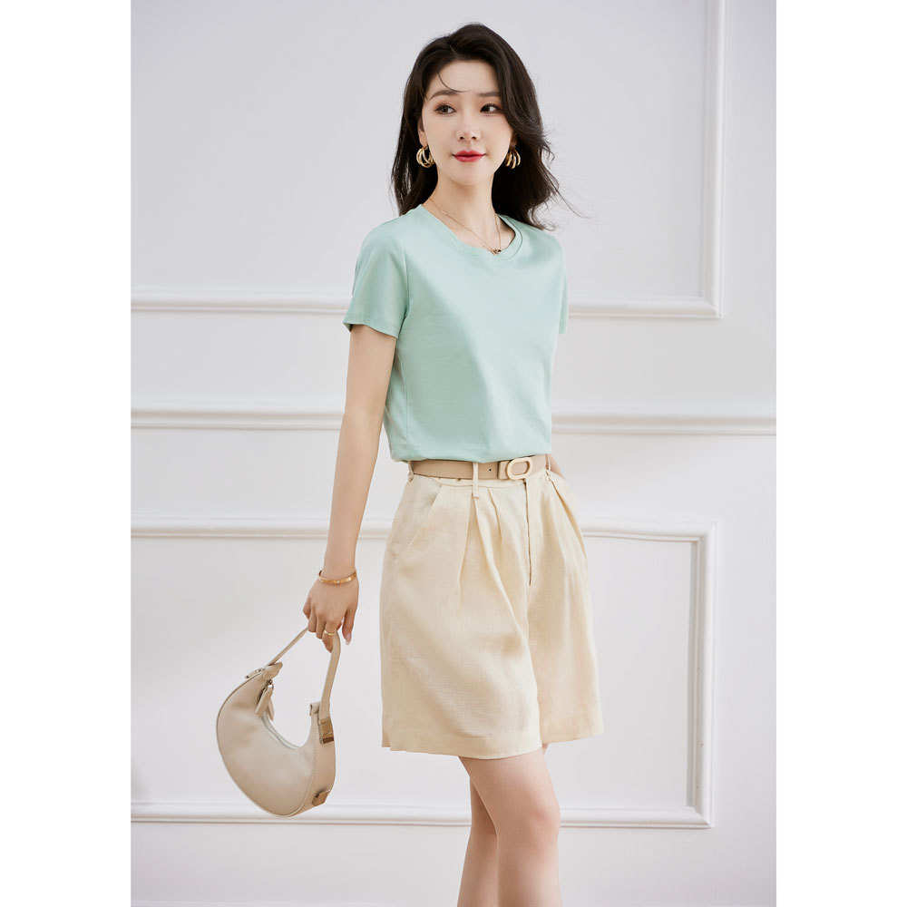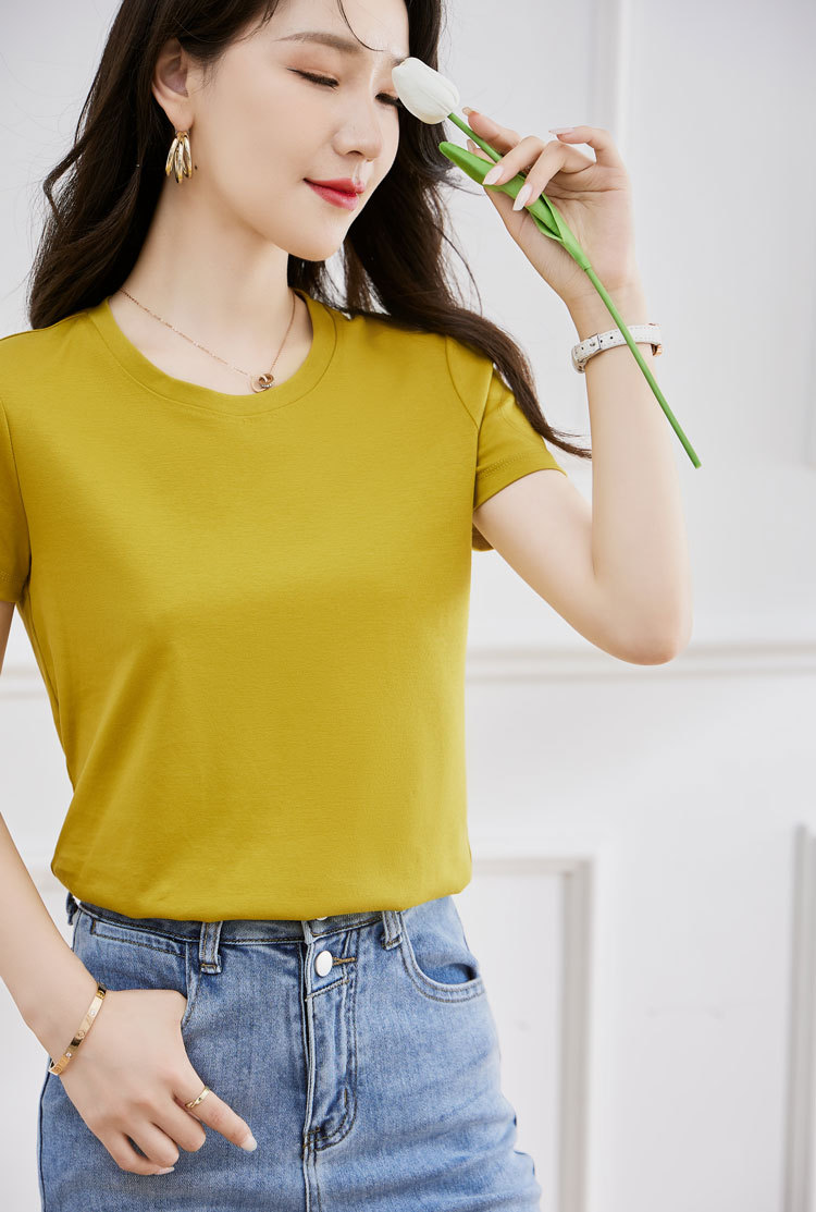 Shenghong 봄과 여름 단색 간단한 80 mercerized 코튼 반팔 티셔츠 여성용 바닥 V-neck 20131 라운드 * 칼라 20132