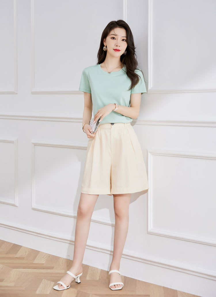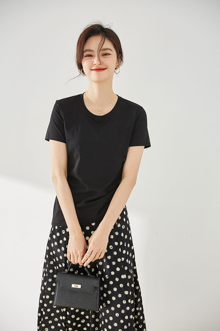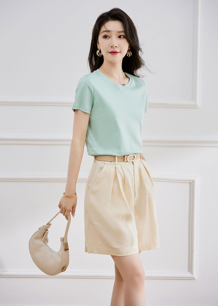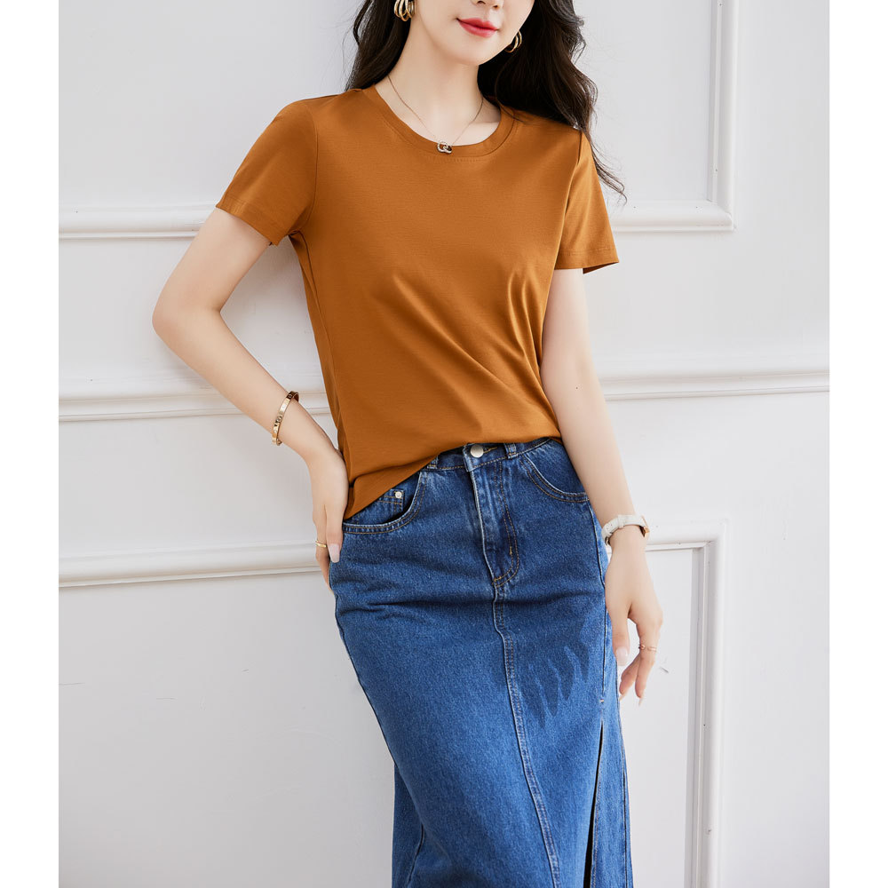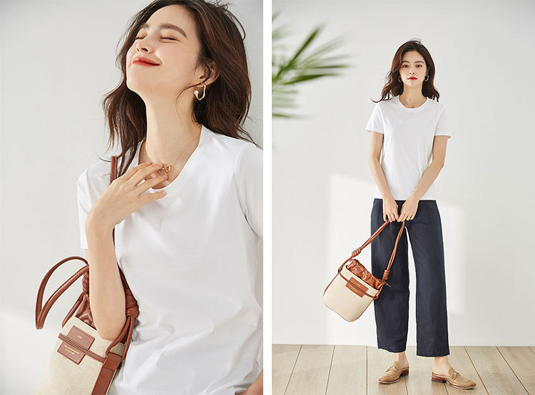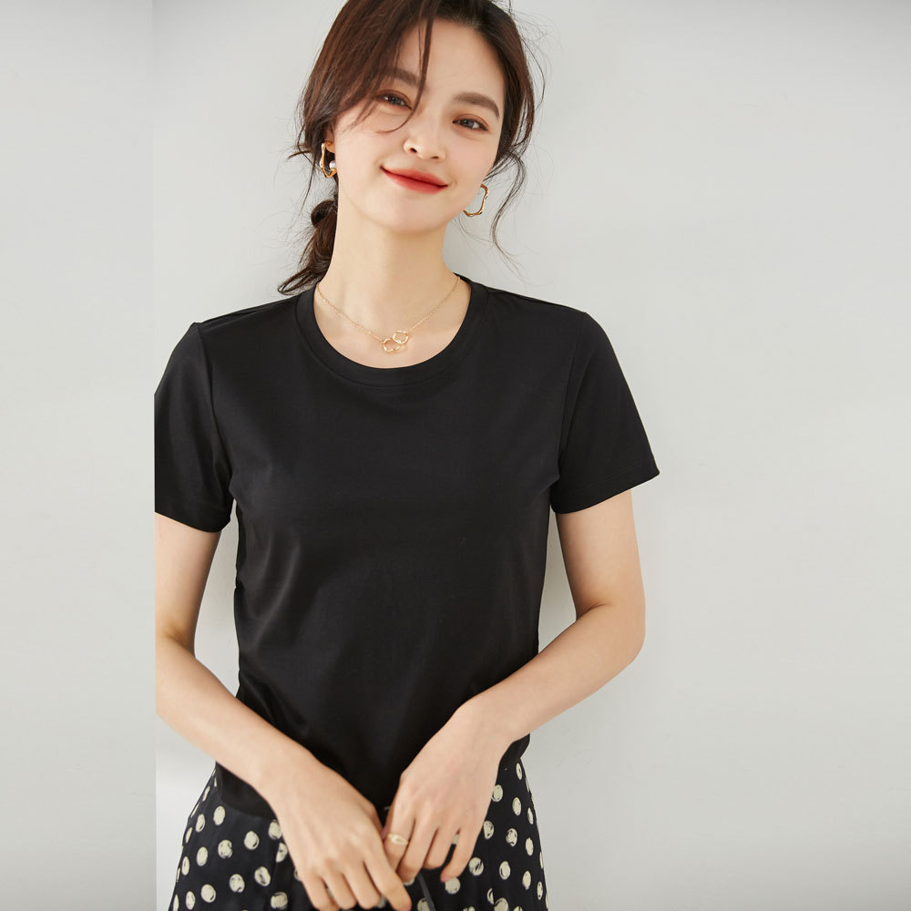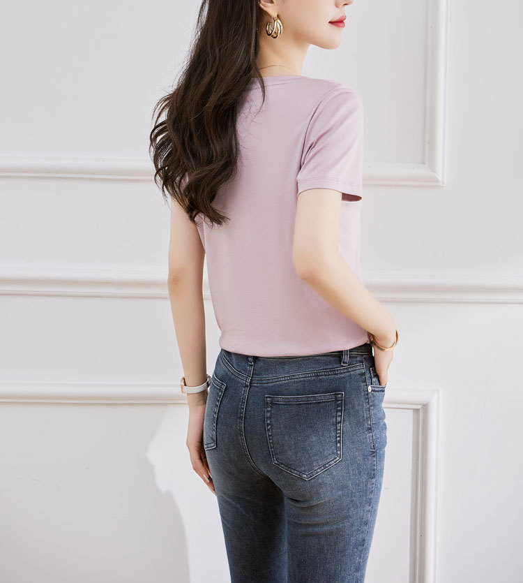 Shenghong 봄과 여름 단색 간단한 80 mercerized 코튼 반팔 티셔츠 여성용 바닥 V-neck 20131 라운드 * 칼라 20132