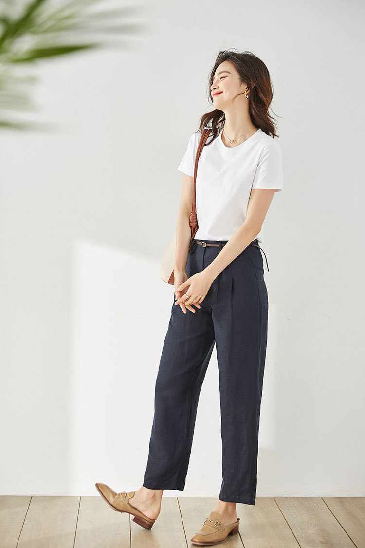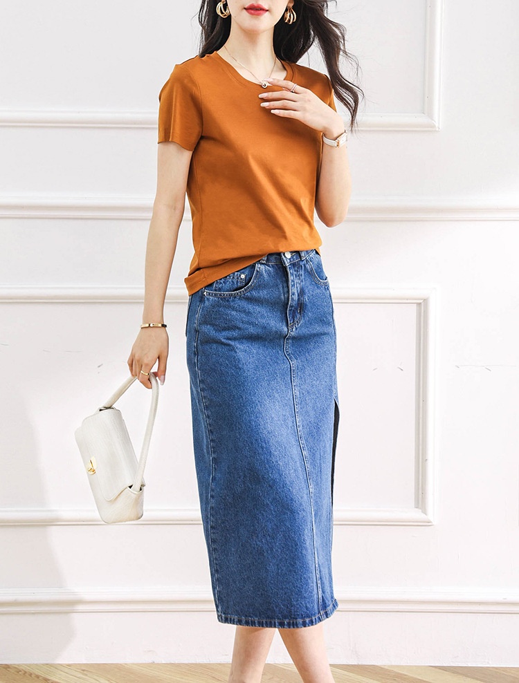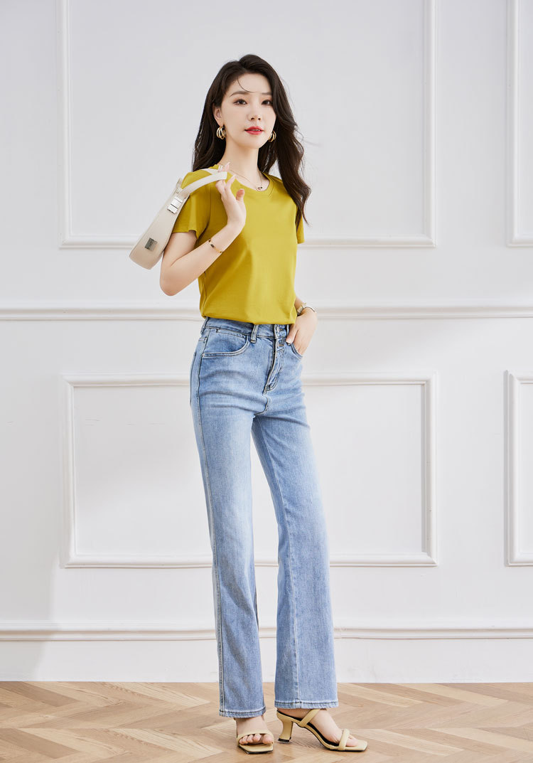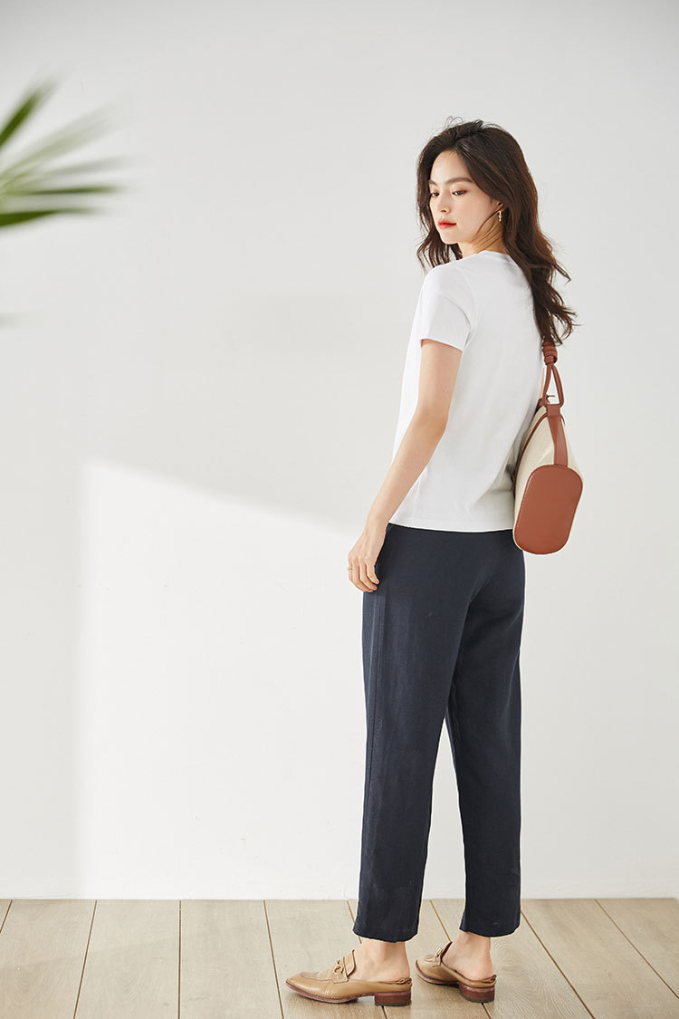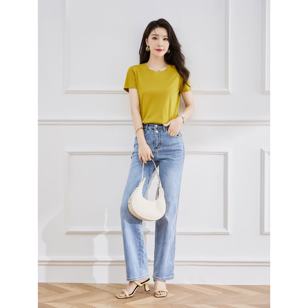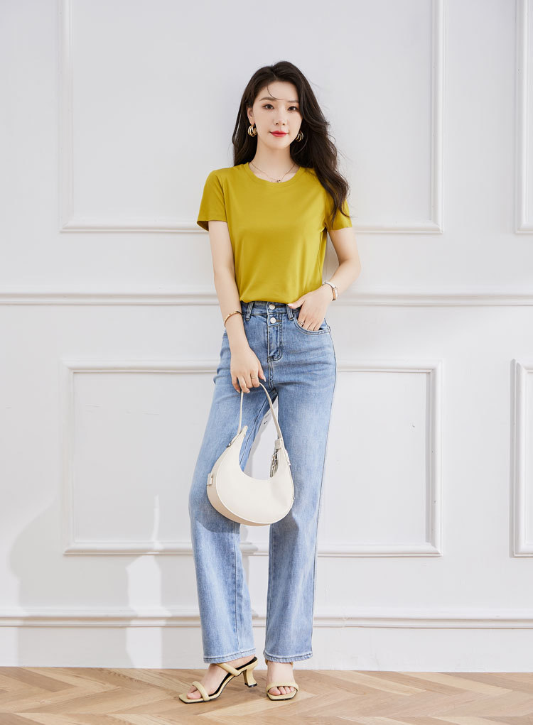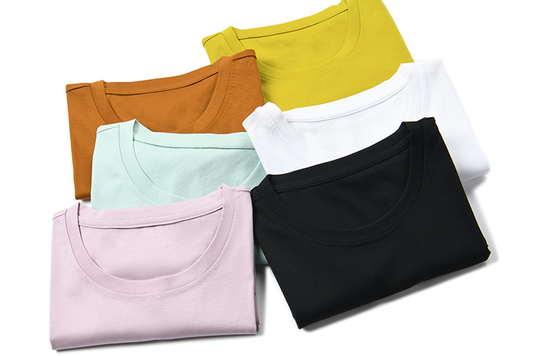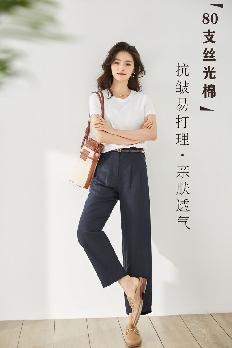 Shenghong 봄과 여름 단색 간단한 80 mercerized 코튼 반팔 티셔츠 여성용 바닥 V-neck 20131 라운드 * 칼라 20132