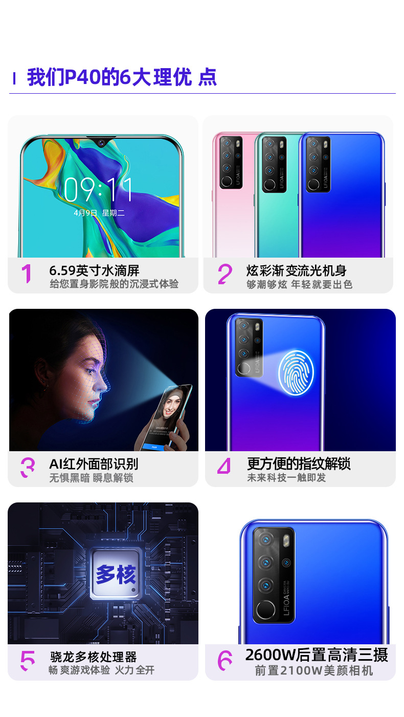 제조업체 P40Pro 브랜드 6.8inch 워터 드롭 대화면 16+1024G 풀 네트워크 5G 스마트폰 도매 배송