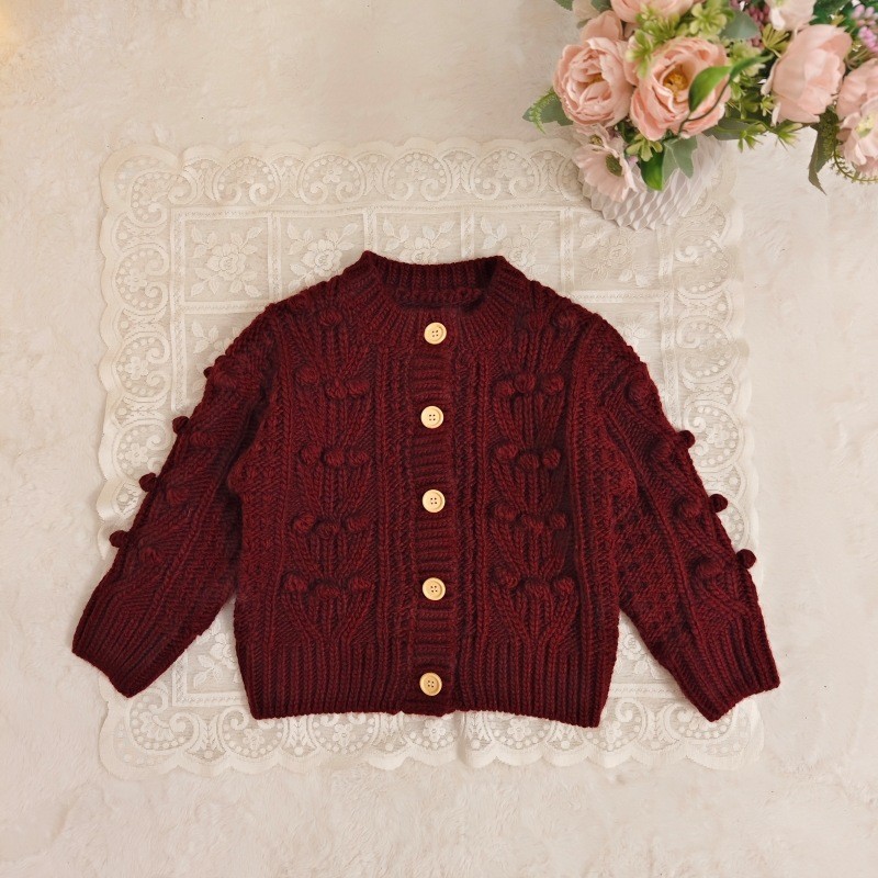 2021 봄 새 소녀 카디건 스웨터 제조 업체 양모 공 니트 두꺼운 싱글 웨어 어린이 코트