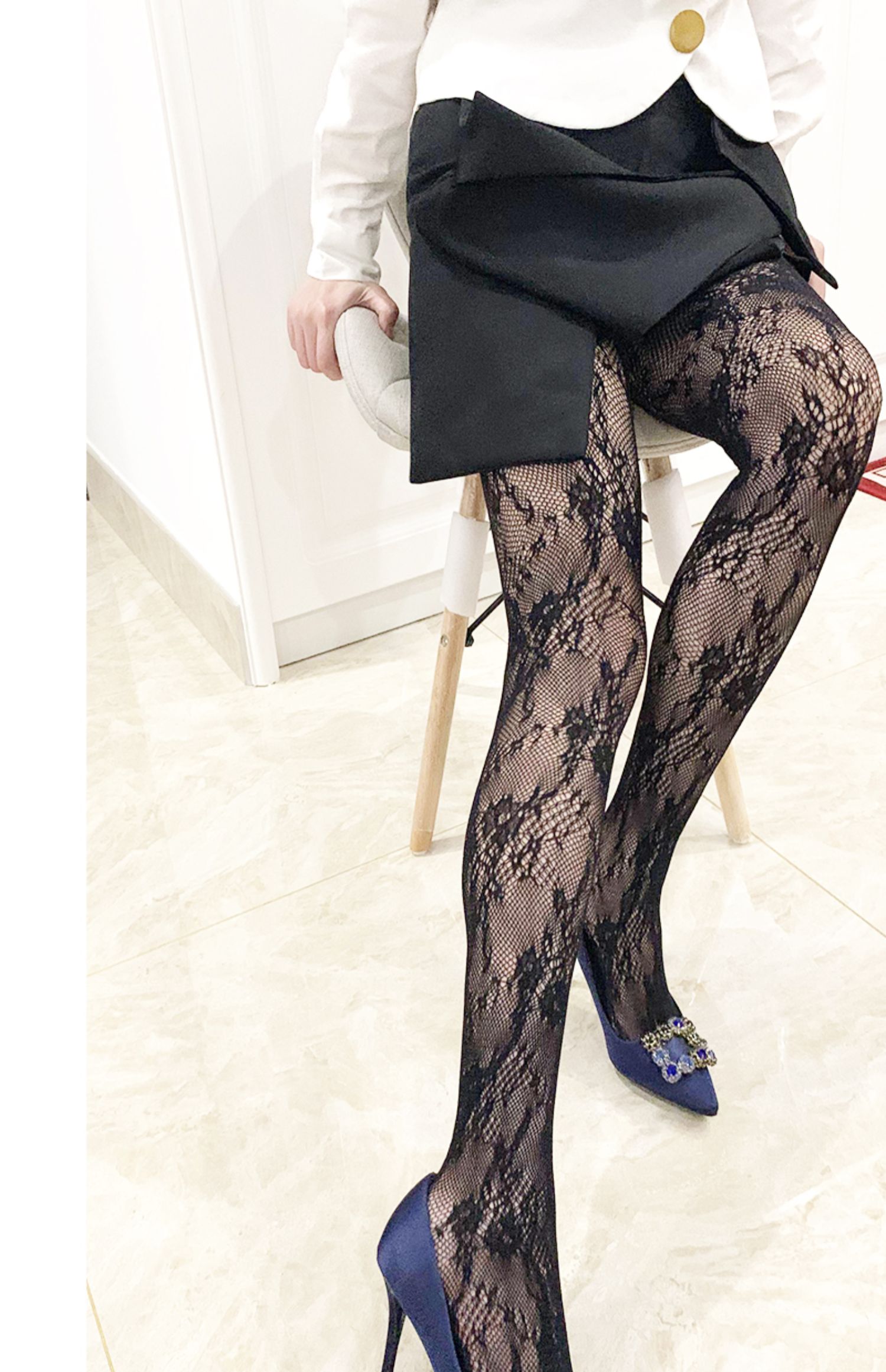 일본 레이스 자카드 찢어지기 쉬운 중공 기모 메쉬 팬티 스타킹 스트레치 슬리밍 섹시 블랙 in 겨울스토어 가기