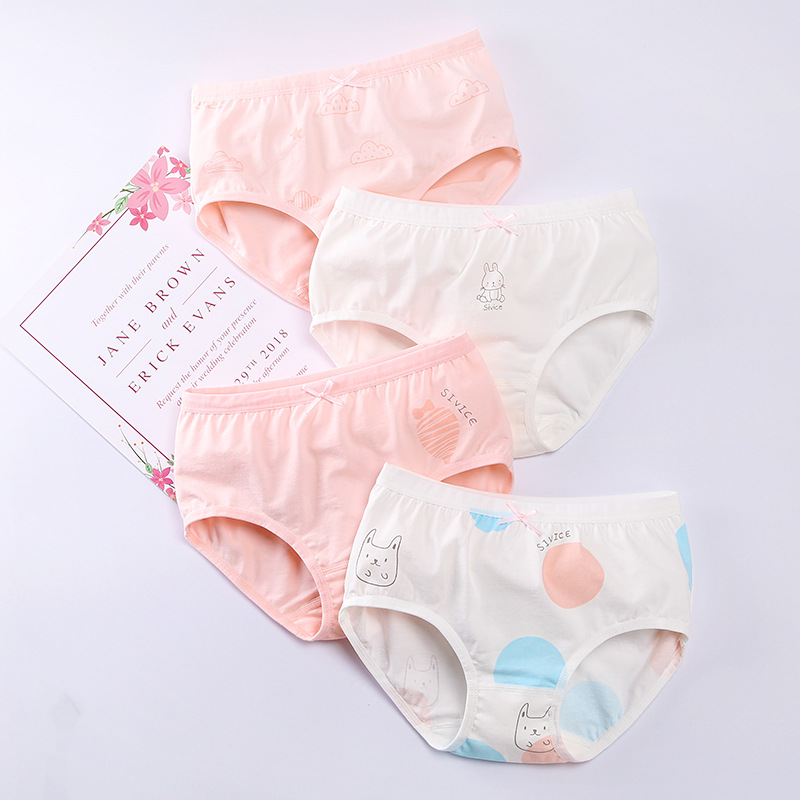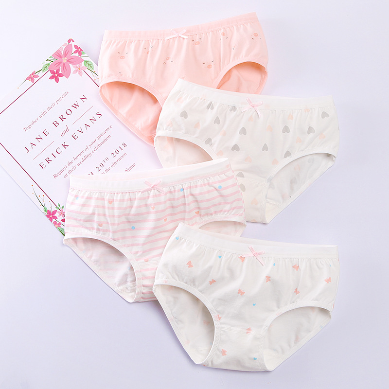 어린이 면 여성 속옷 여름 중학교 어린이 삼각형 4 코너 학생 반바지 여아 면 여아 2-3-4 팩