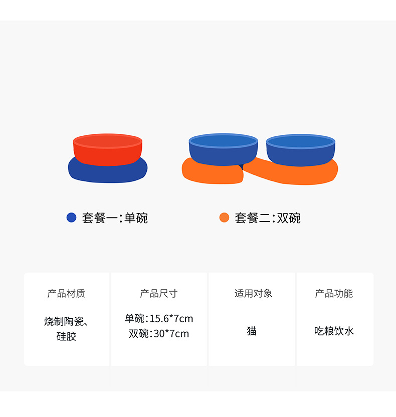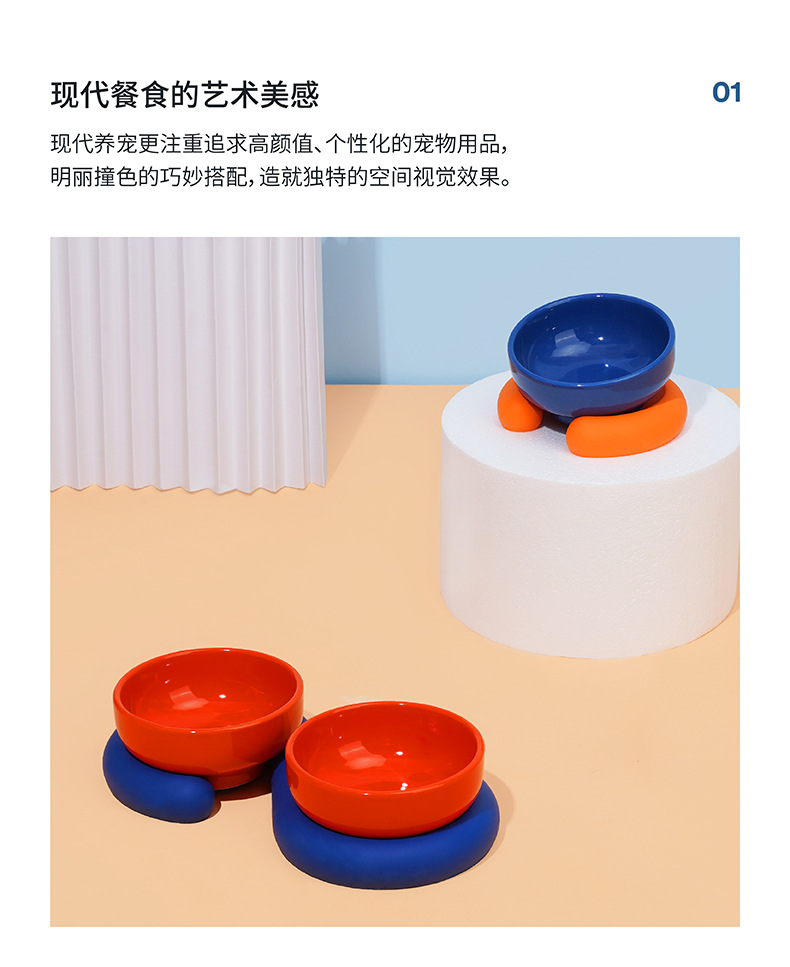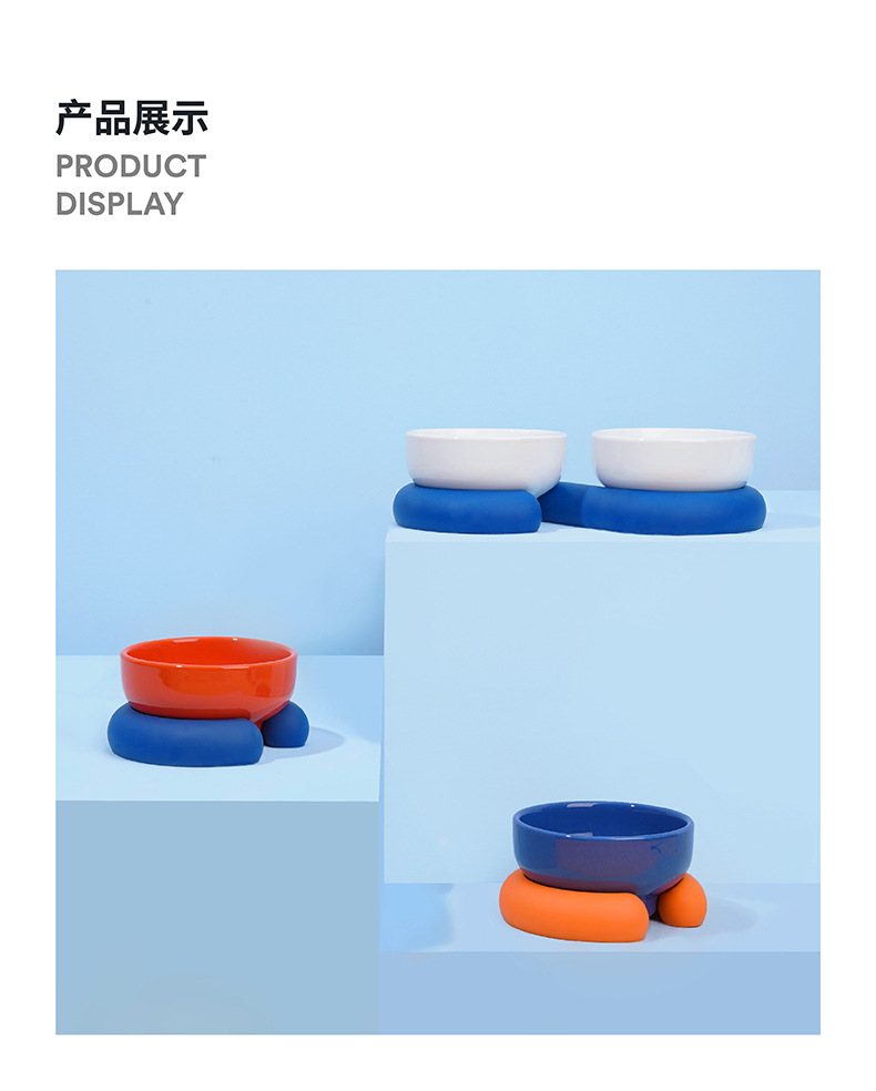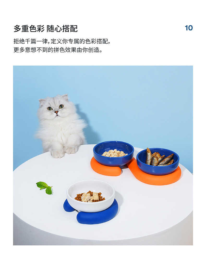 Zeze 고양이 그릇 세라믹 애완 동물 그릇 보호 경추 개 그릇 전복 방지 고양이 음식 식수 더블 그릇 애완 동물 용품
