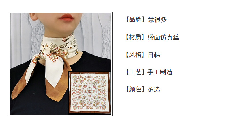 Yang Caiyu의 같은 스타일 70 여성용 작은 사각형 스카프 봄 여름 패션 프랑스 복고풍 헤어 밴드 긴 스카프스토어 가기