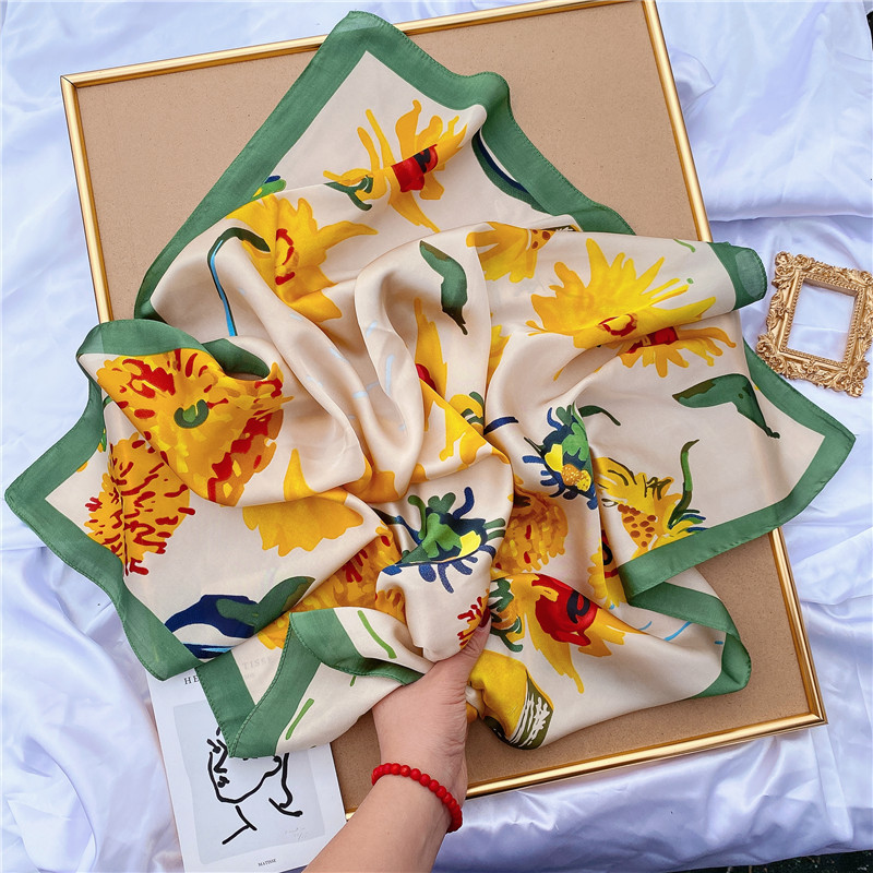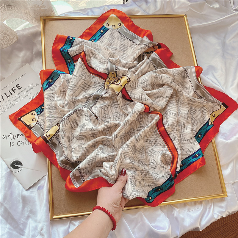 Yang Caiyu의 같은 스타일 70 여성용 작은 사각형 스카프 봄 여름 패션 프랑스 복고풍 헤어 밴드 긴 스카프