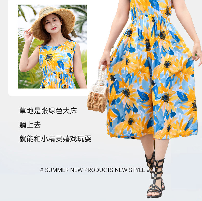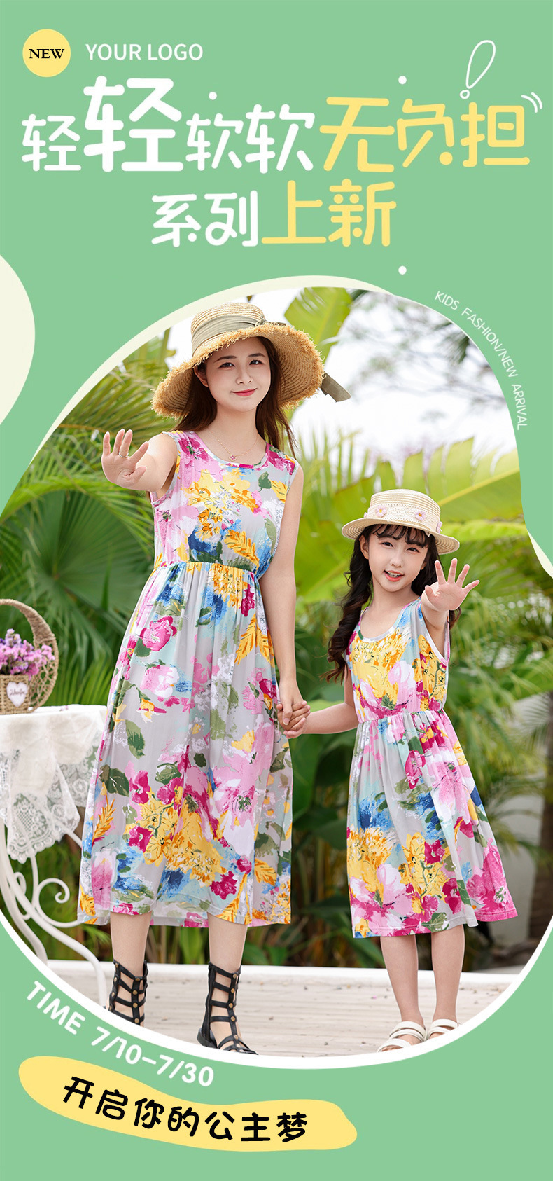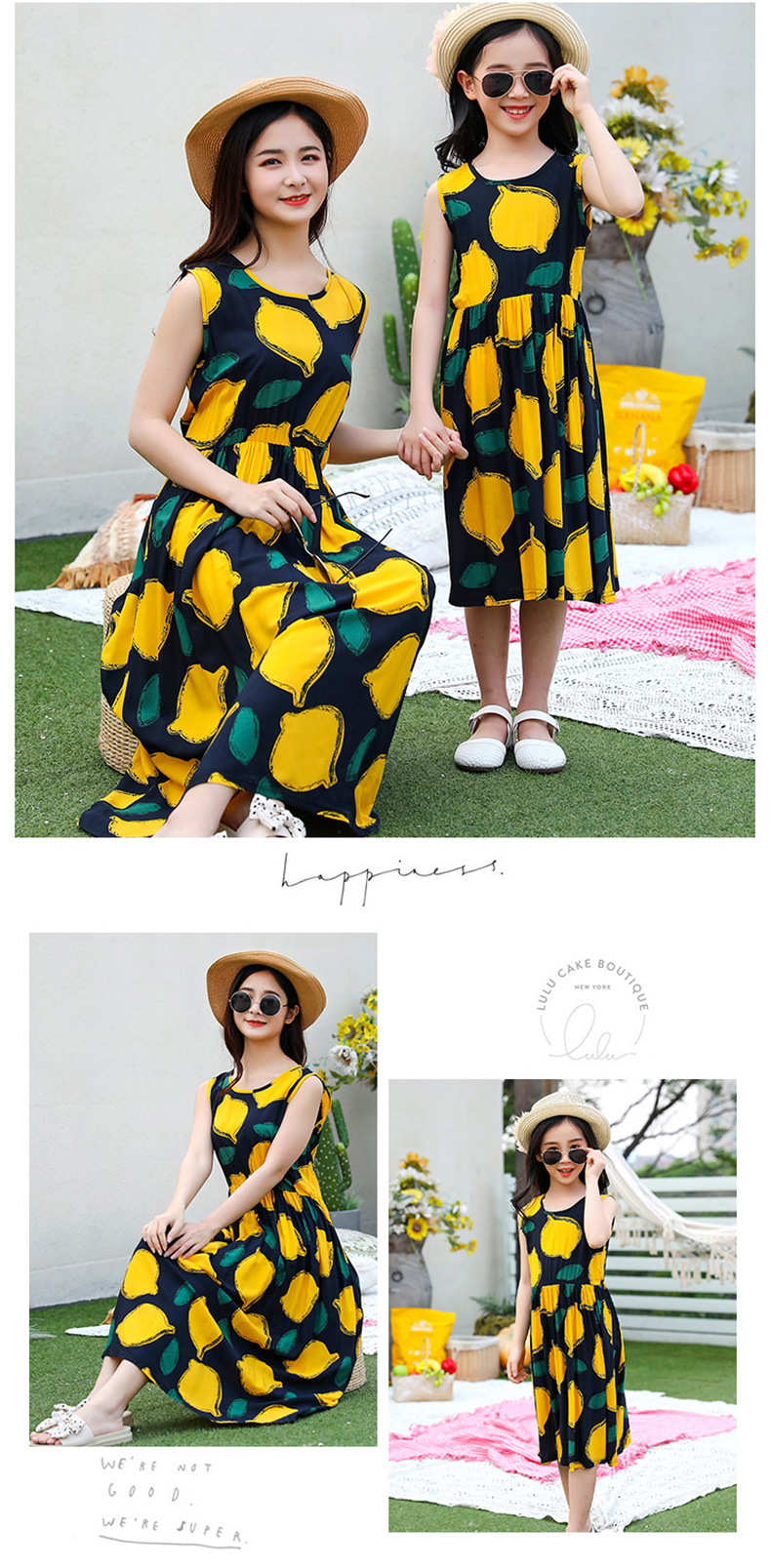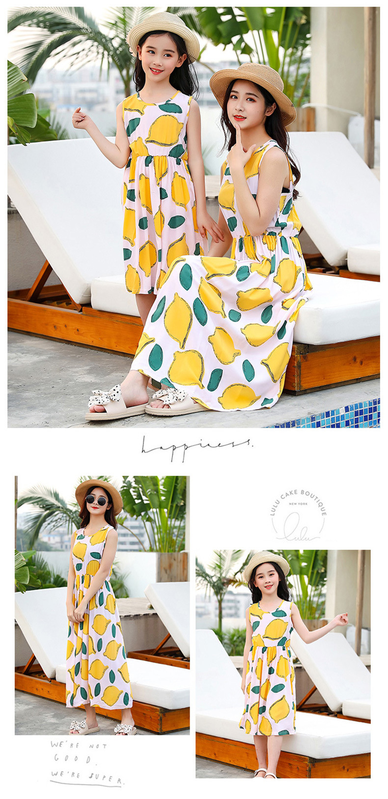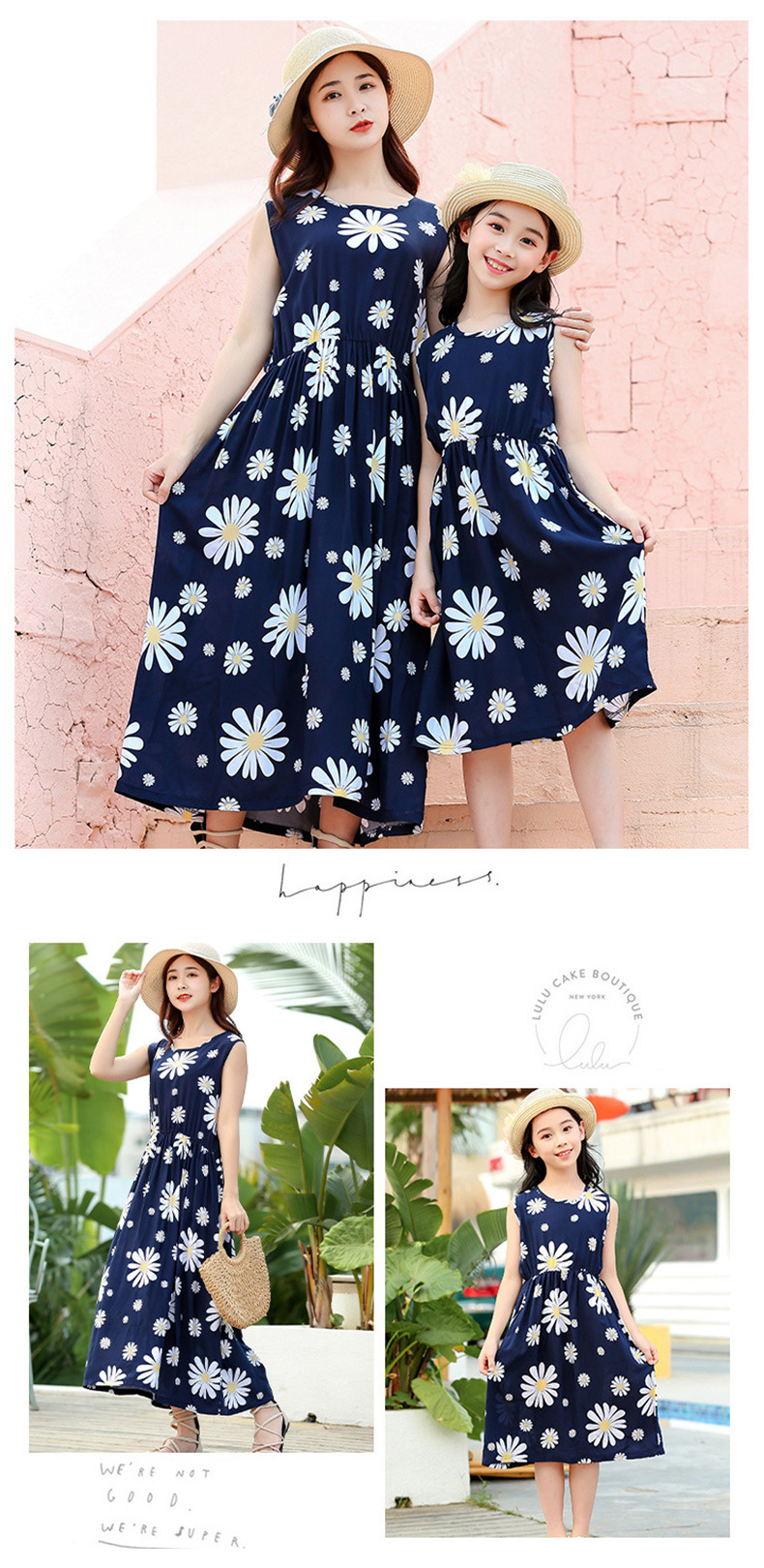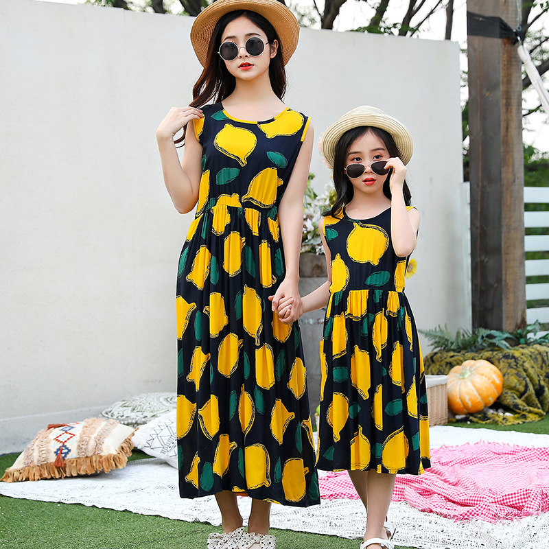 2025 여름 부모-자녀 원피스 어머니와 딸 달콤한 인쇄 비치 원피스 큰 아이 멋진 통기성 느슨한 조끼 원피스스토어 가기