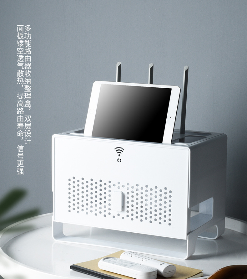 路由器收纳盒wifi收纳盒电线收纳插线板收纳盒免打孔机顶盒置物架