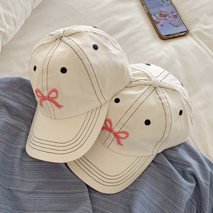 韩版蝴蝶结刺绣棒球帽女夏季甜美可爱显脸小遮阳防晒软顶鸭舌帽子