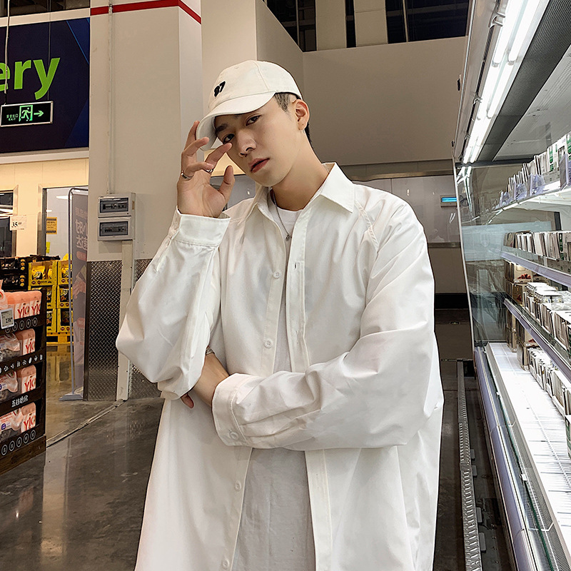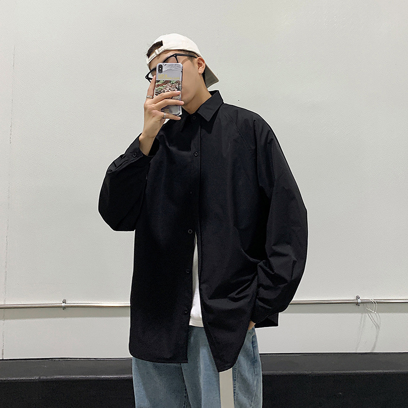 긴 소매 셔츠 남자의 봄 전문 순수한 흰색 셔츠 캐주얼 한국 유행 잘 생긴 홍콩 스타일 일본어베이스 셔츠