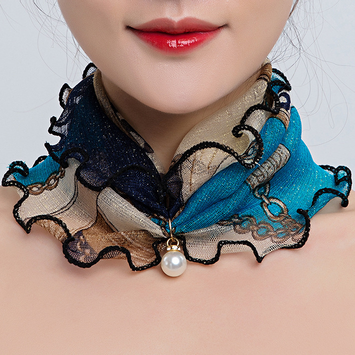 스카프 여자의 가을과 겨울 한국 스타일 메쉬 터틀넥 스카프 목 소매 경추 스카프 봄 얇은 모든 일치 펜던트 스카프