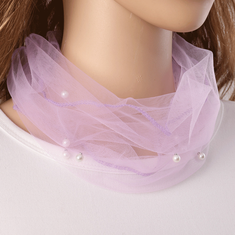 여성용 스카프 봄과 여름 얇은 실크 스카프 메쉬 레이스 진주 색상 모든 일치 유행 작은 목 목 보호대 목 소매