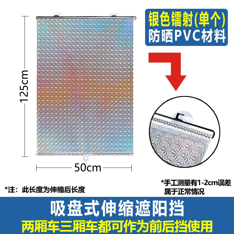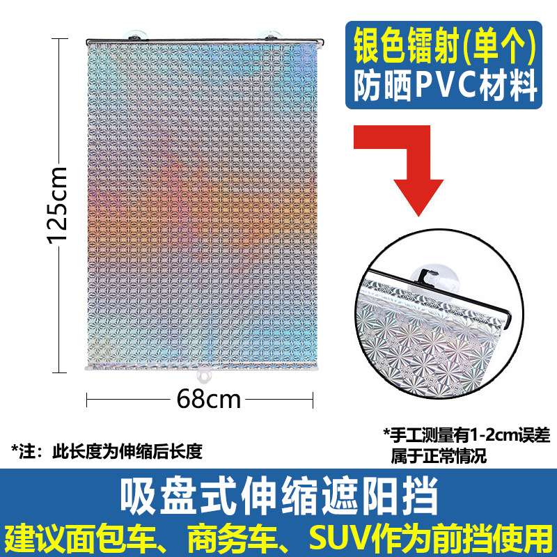 这款用于汽车玻璃的隔热帘适用于各款车型,可帮你的爱车隔离90%以上的阳光;安装非常快捷,只要你停车时轻轻拉起拉环扣在吸盘上即可,两秒时间,清凉一夏!还有自动收卷功能,不伤车体,美观实用,价格便宜,是你夏天驾车出门不可少的用品!