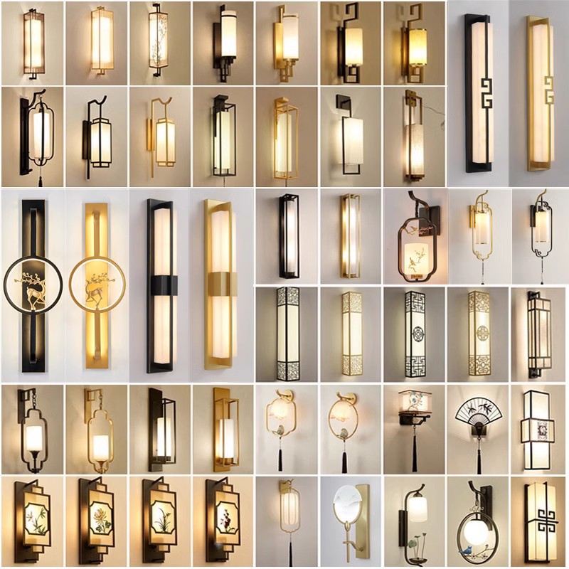 새로운 중국식 벽 램프 거실 배경 벽 램프 현대 간단한 침실 침대 옆 램프 빈티지 레스토랑 계단 통로 led스토어 가기