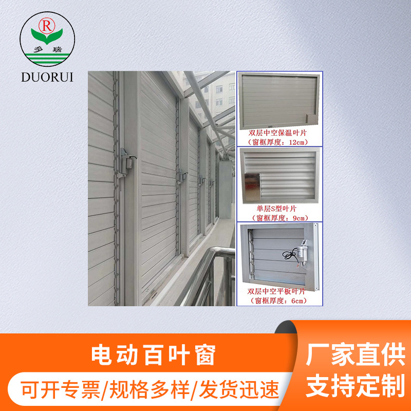1、"电动百叶窗"通过用使用DC24V直流电机(或交流AC220V)带动叶片转动,实现通风及保温隔热、防沙、防雨功能,叶片由铝合金型材一次成型,具有自动翻转功能,能调节室内的自然采光、空气流通。叶片调节灵活长年无需加润滑油、无噪音、密封性能良好。