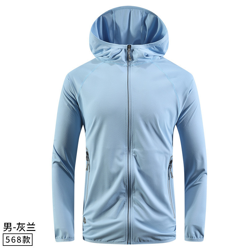 남녀공용 자외선 차단 의류, 스포츠 스킨 윈드브레이커, 통기성 낚시복, 후드형 커플 등산복, 원피스 아웃도어 의류스토어 가기