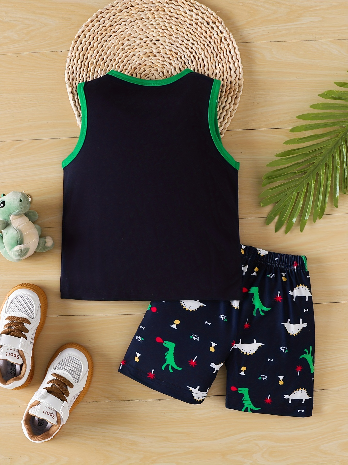 Baby2-7Y 민소매 소년 캐주얼 홈 옷 머리 귀여운 공룡 아기 인쇄 2 종 세트의 세대