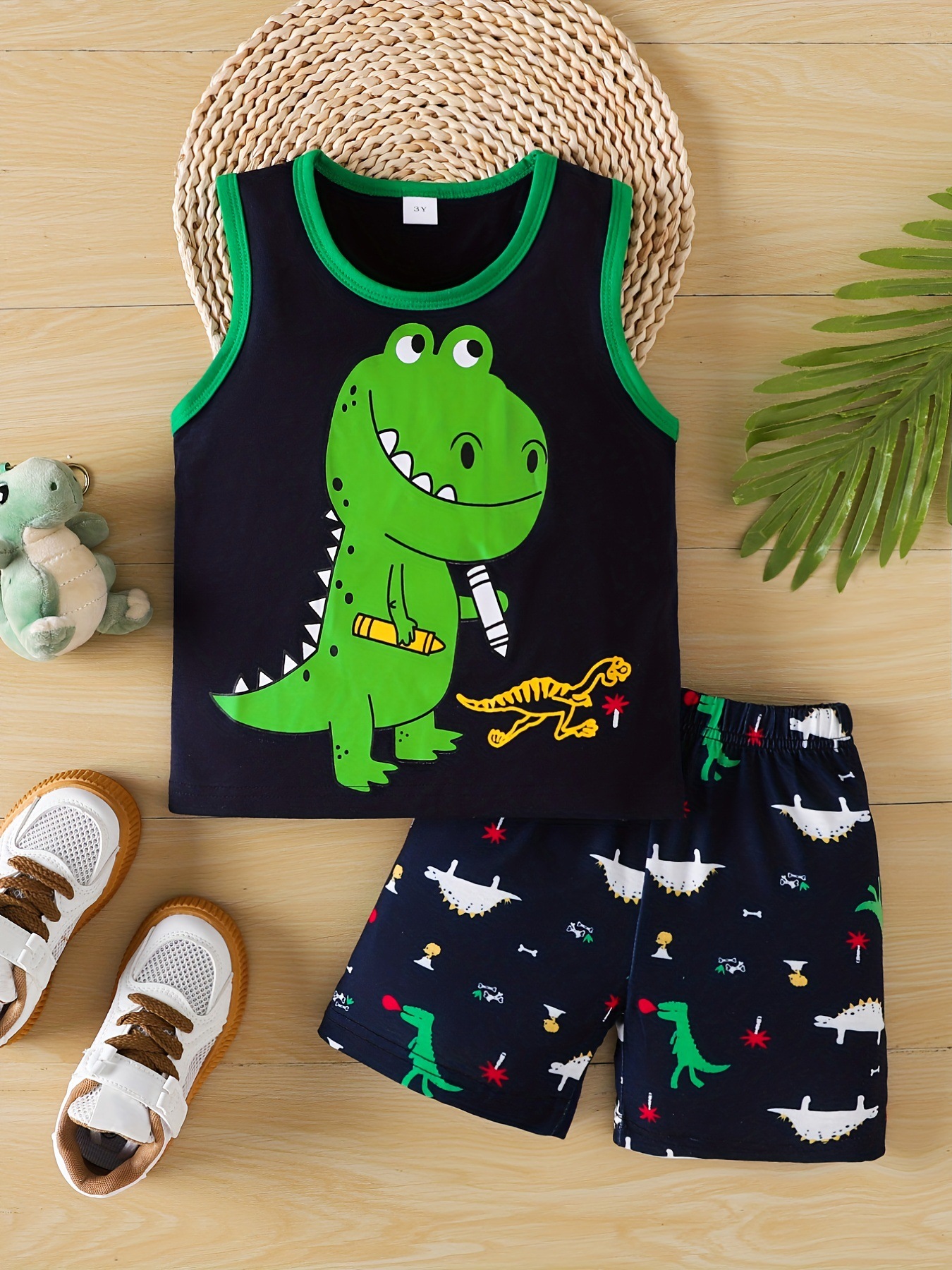 Baby2-7Y 민소매 소년 캐주얼 홈 옷 머리 귀여운 공룡 아기 인쇄 2 종 세트의 세대스토어 가기