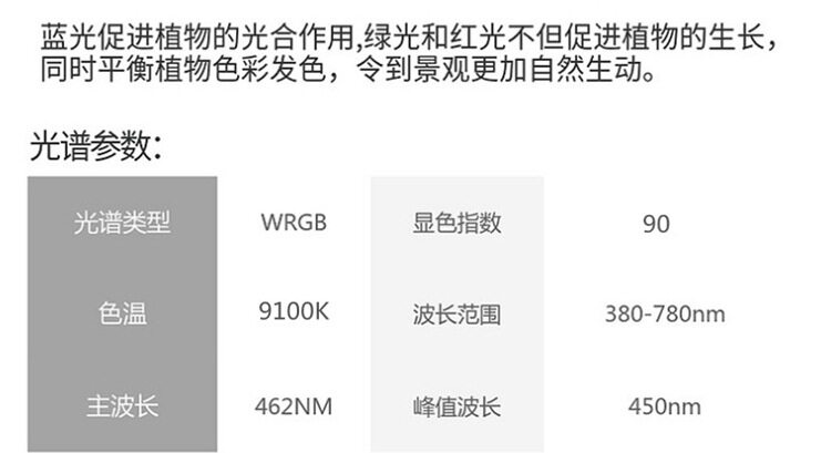 灯光说明:彩色光型号照射出来的光看起来还是接近白色的,并不是花色的!