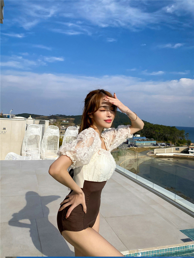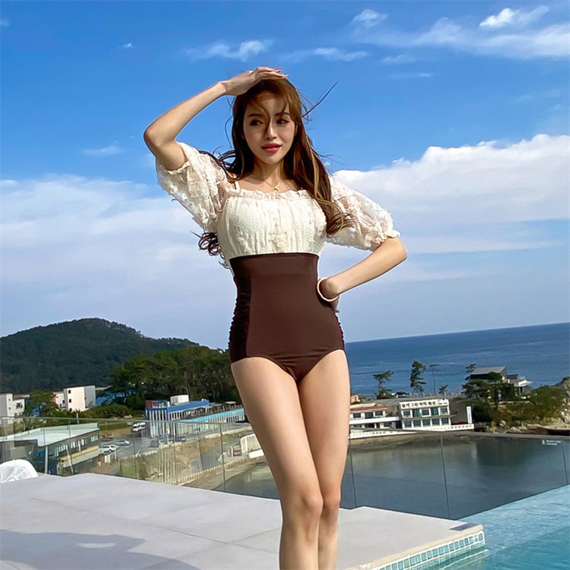 2023 수영복 요정 팬 보수적 인 작은 가슴 수집 슬림 배꼽 덮음 레이스 섹시한 온천 원피스 수영복 여성스토어 가기