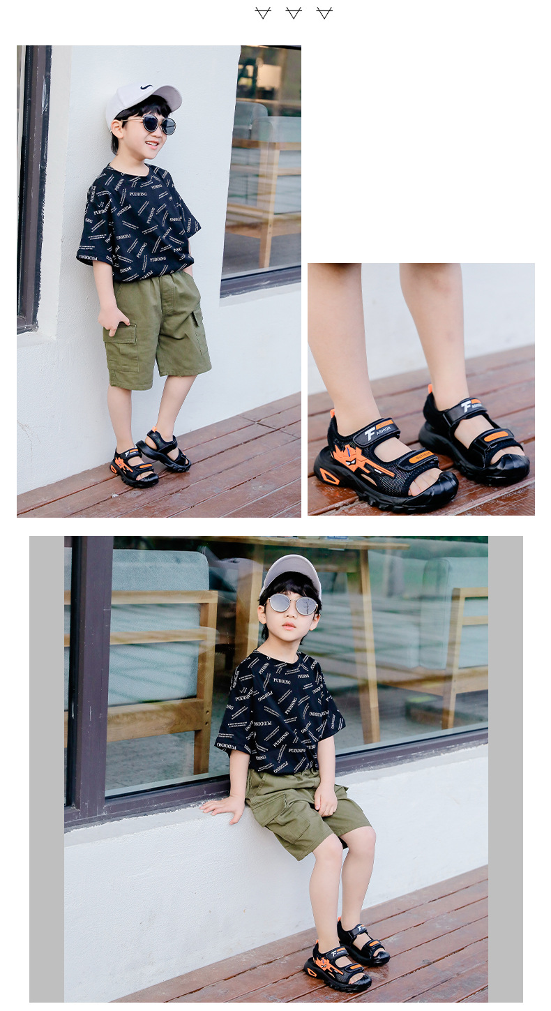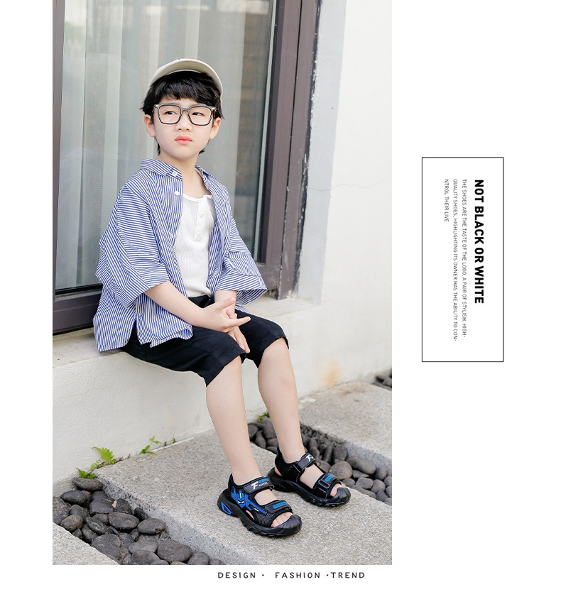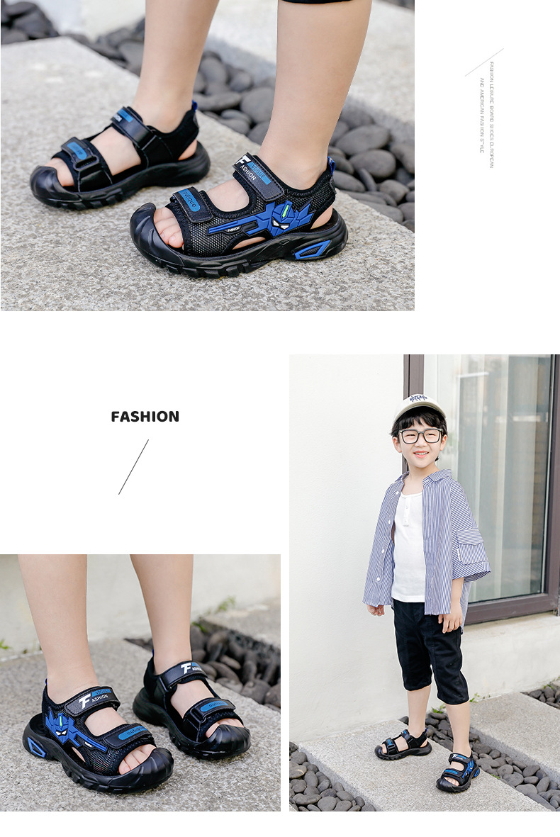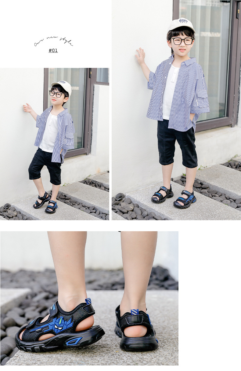 소년 샌들 2025 여름 새로운 어린이 바오터우 신발 패션 부드러운 밑창 한국 스타일 소가죽 소년 비치 신발 도매