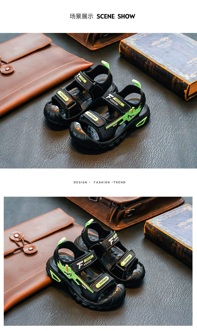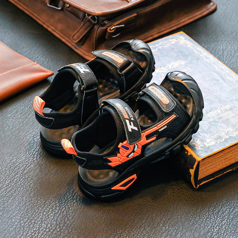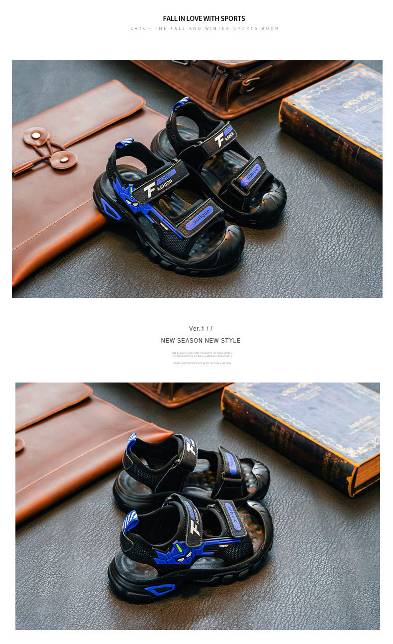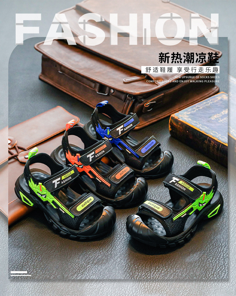 소년 샌들 2025 여름 새로운 어린이 바오터우 신발 패션 부드러운 밑창 한국 스타일 소가죽 소년 비치 신발 도매