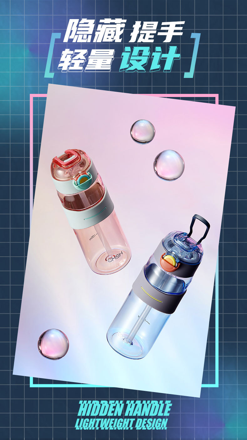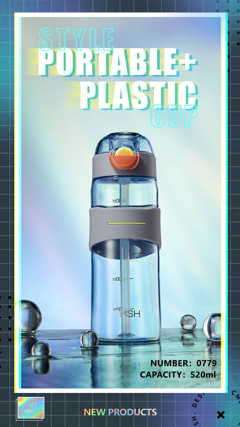 조수 쿨 스케일 뚜껑이있는 대용량 플라스틱 물컵 휴대용 스포츠 손잡이 주전자 어린이 빨대 질식 방지 물컵스토어 가기